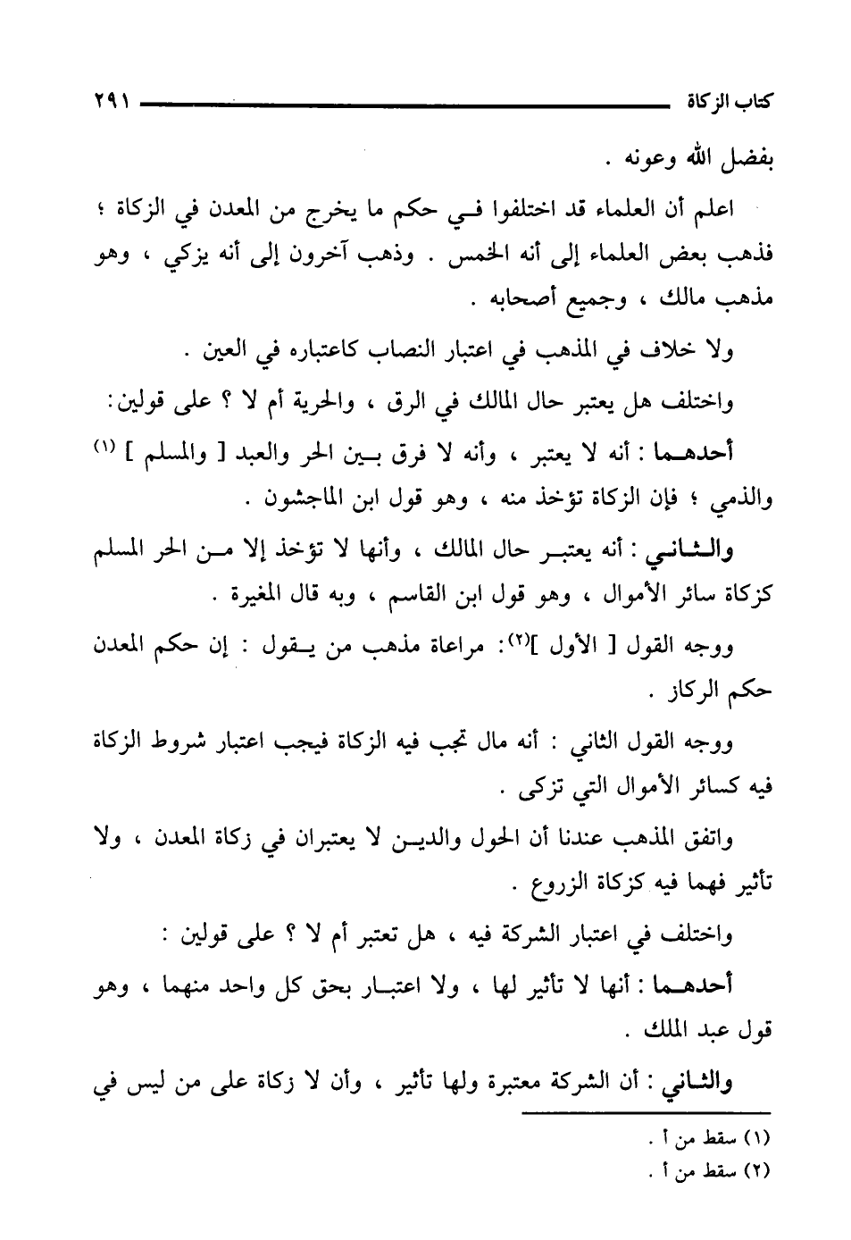أحدهما: أنه لا يعتبر، وأنه لا فرق بين الحر والعبد [والمسلم] (¬1) والذمي؛ فإن الزكاة تؤخذ منه، وهو قول ابن الماجشون.