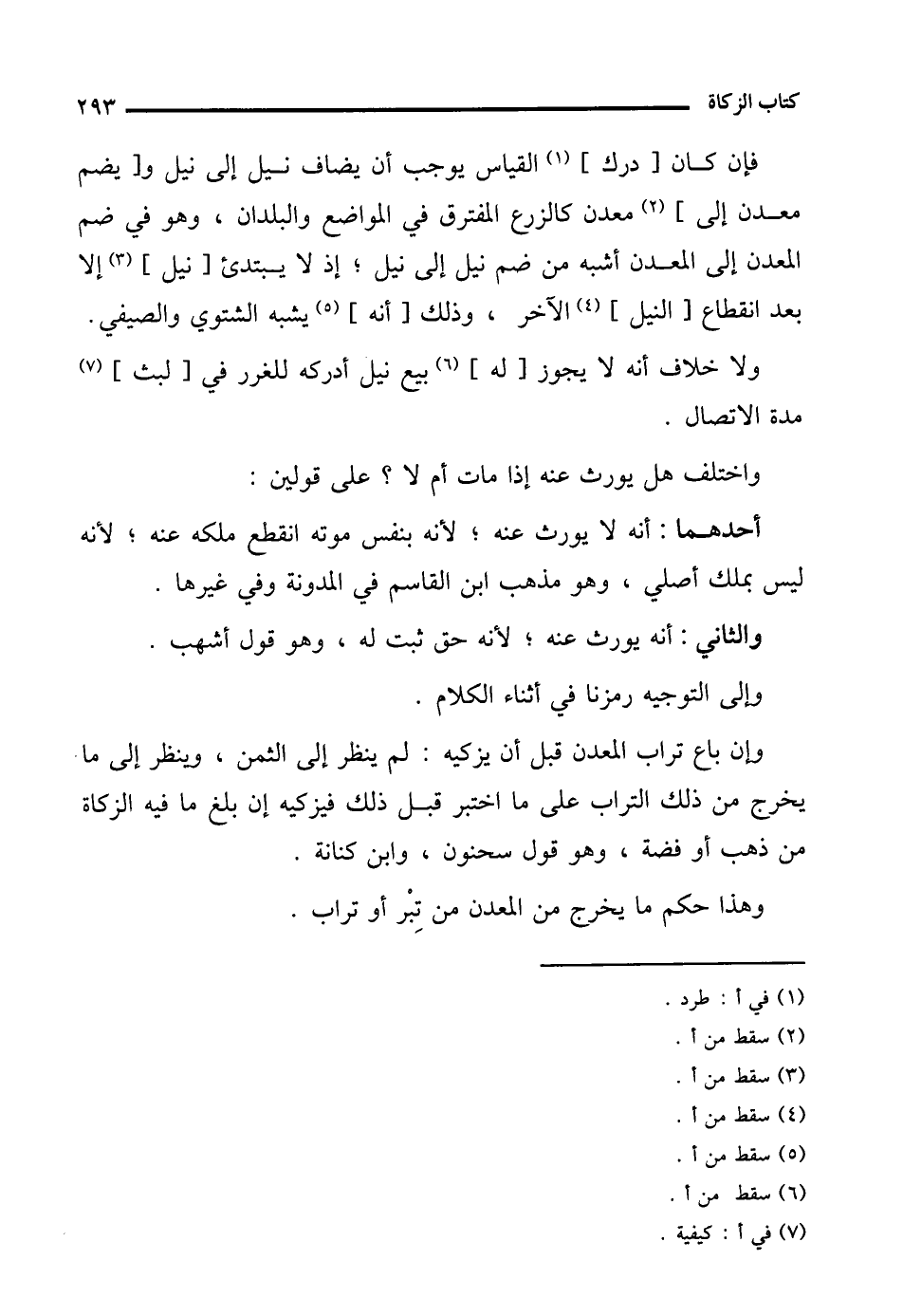 فإن كان [درك] (¬1) القياس يوجب أن يضاف نيل إلى نيل و [يضم معدن إلى] (¬2) معدن كالزرع المفترق في المواضع والبلدان، وهو في ضم المعدن إلى المعدن أشبه من ضم نيل إلى نيل؛ إذ لا يبتدئ [نيل] (¬3) إلا بعد انقطاع [النيل] (¬4) الآخر، وذلك [أنه] (¬5) يشبه الشتوي والصيفي.