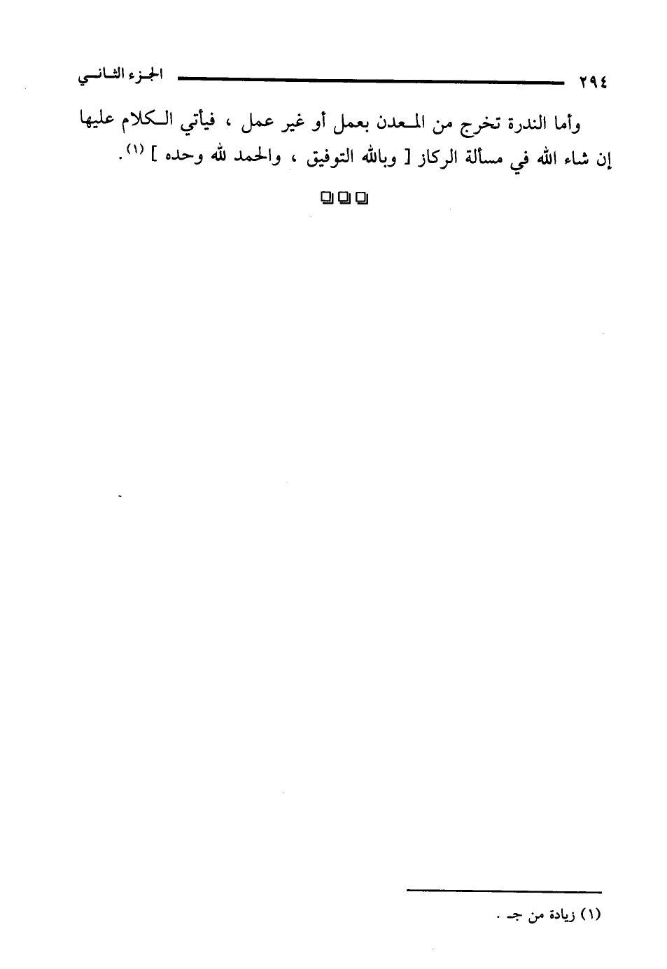 وأما الندرة تخرج من المعدن بعمل أو غير عمل، فيأتي الكلام عليها إن شاء الله في مسألة الركاز [وبالله التوفيق، والحمد لله وحده] (¬1).