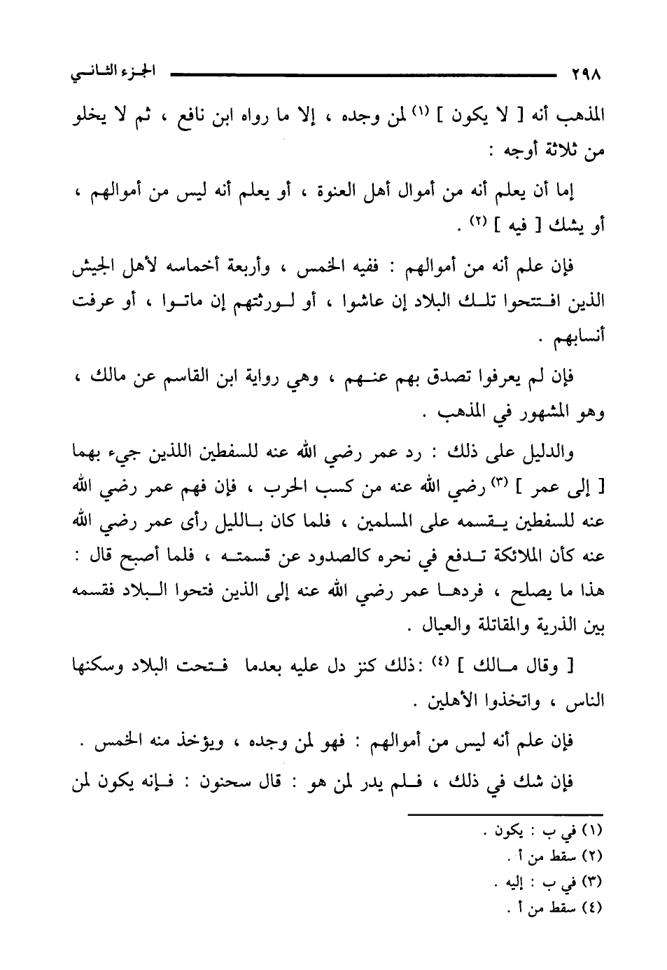 والدليل على ذلك: رد عمر رضي الله عنه للسفطين اللذين جيء بهما [إلى عمر] (¬3) رضي الله عنه من كسب الحرب، فإن فهم عمر رضي الله عنه للسفطين يقسمه على المسلمين، فلما كان بالليل رأى عمر رضي الله عنه كأن الملائكة تدفع في نحره كالصدود عن قسمته، فلما أصبح قال: هذا ما يصلح، فردها عمر رضي الله عنه إلى الذين فتحوا البلاد فقسمه بين الذرية والمقاتلة والعيال.