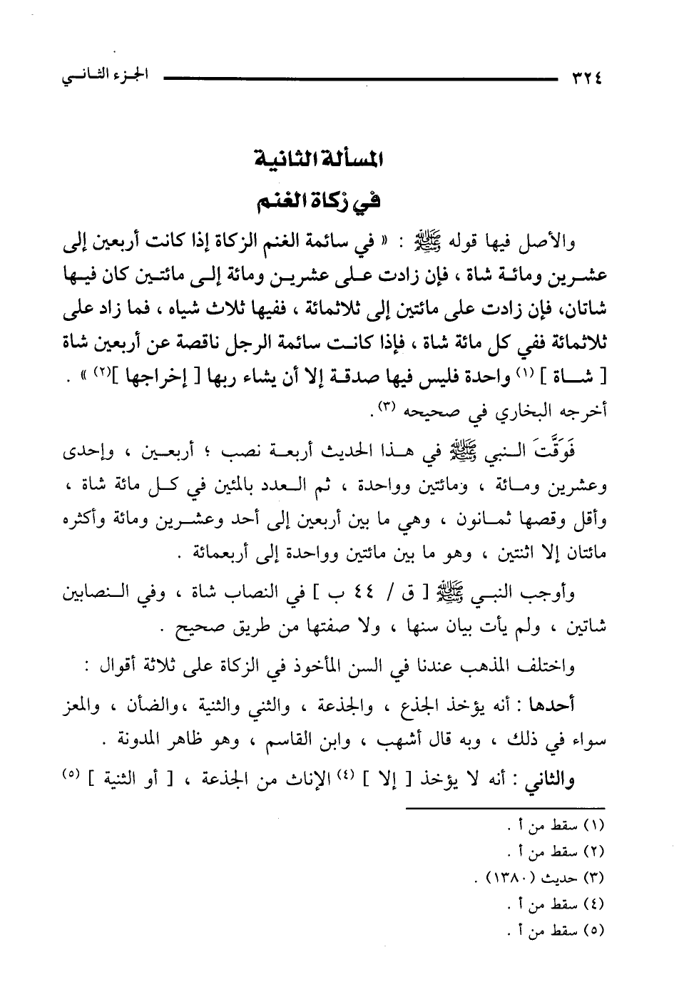 المسألة الثانية في زكاة الغنم