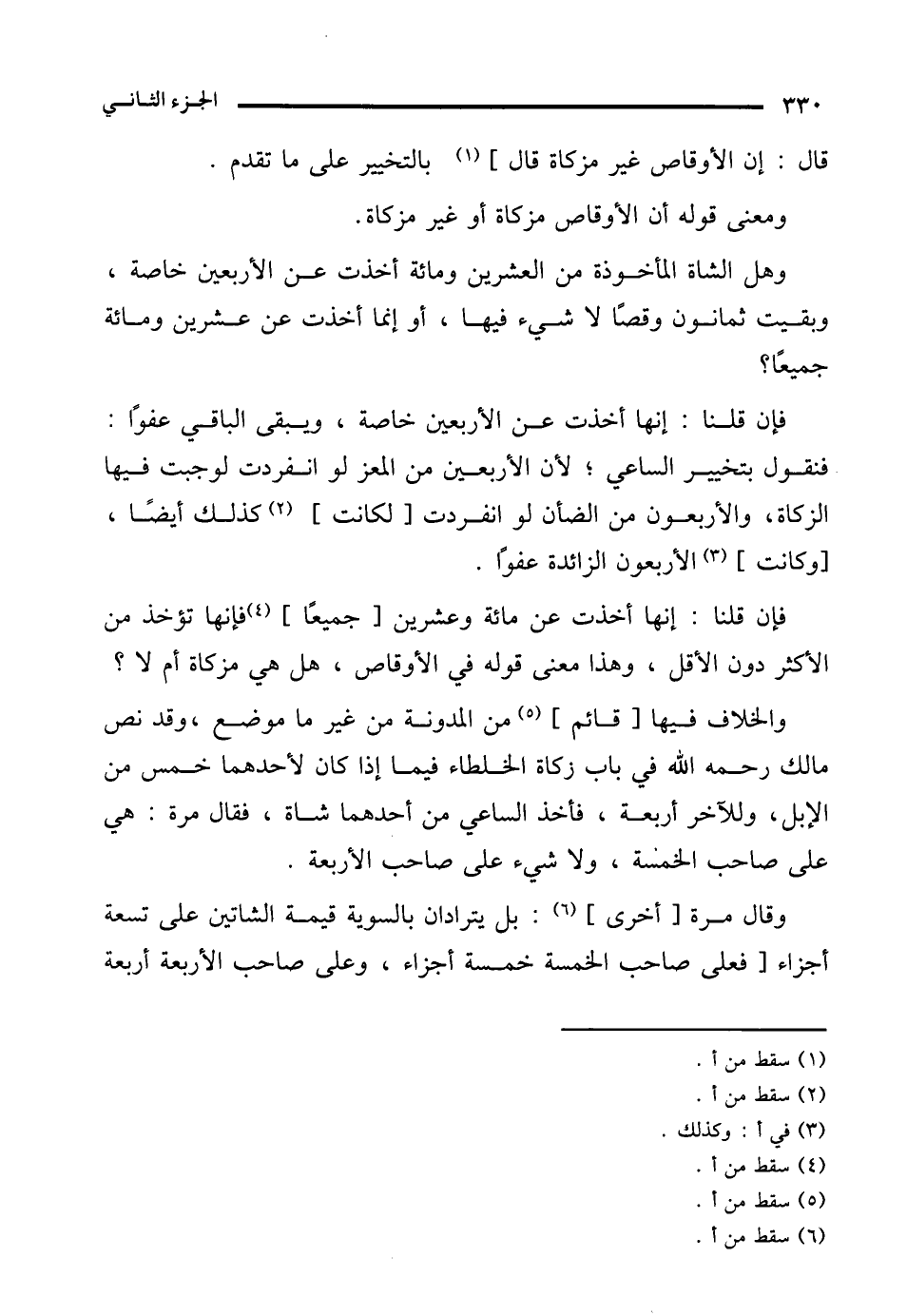 فإن قلنا: إنها أخذت عن مائة وعشرين [جميعًا] (¬4) فإنها تؤخذ من الأكثر دون الأقل، وهذا معنى قوله في الأوقاص، هل هي مزكاة أم لا؟