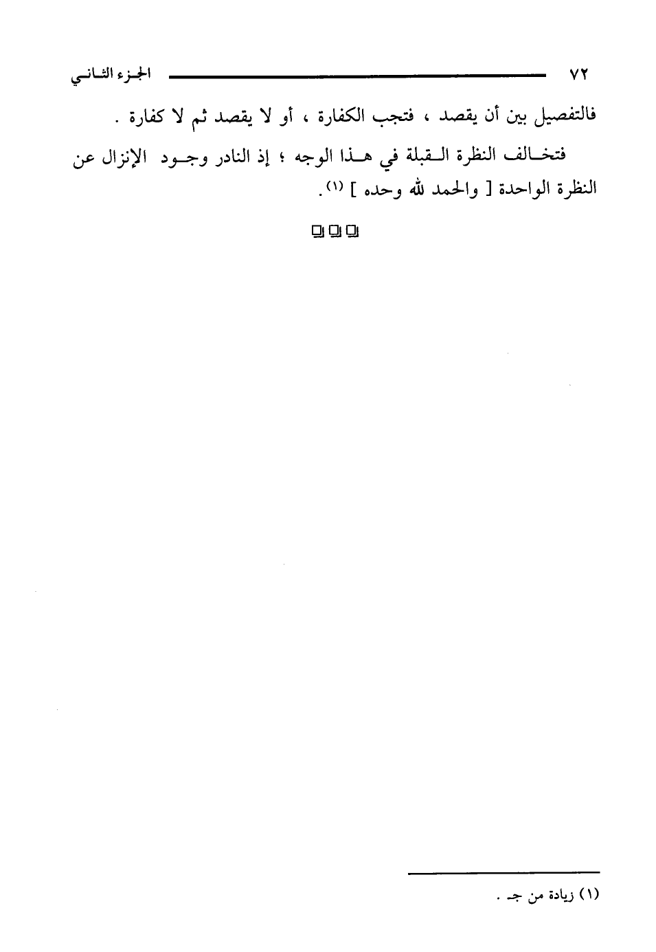 فتخالف النظرة القبلة في هذا الوجه؛ إذ النادر وجود الإنزال عن النظرة الواحدة [والحمد لله وحده] (¬1).