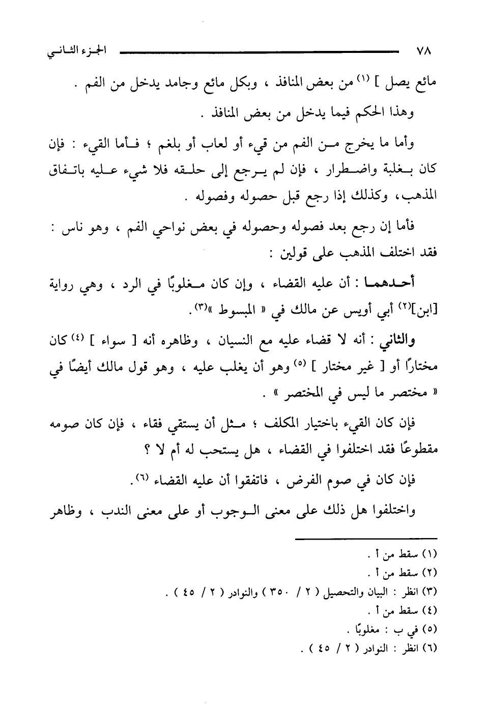 (¬3) انظر: البيان والتحصيل (2/ 350) والنوادر (2/ 45).
