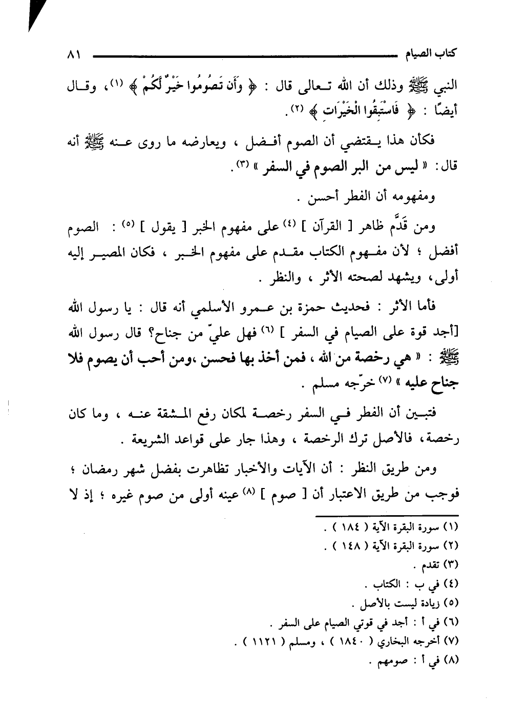 النبي - صلى الله عليه وسلم - وذلك أن الله تعالى قال: {وَأَنْ تَصُومُوا خَيْرٌ لَكُمْ} (¬1)، وقال أيضًا: {فَاسْتَبِقُوا الْخَيْرَاتِ} (¬2).