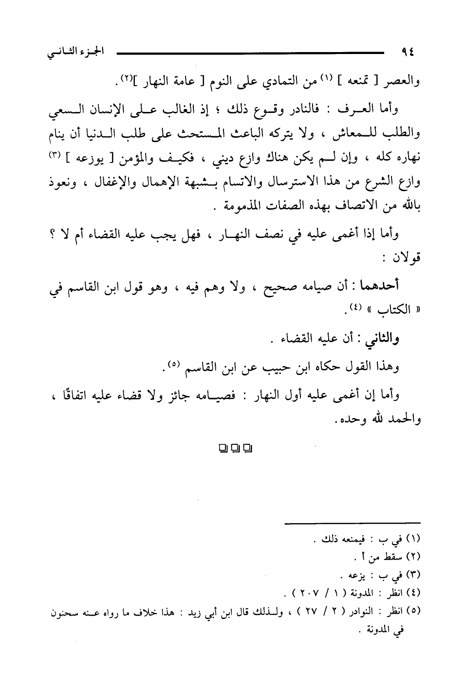 (¬5) انظر: النوادر (2/ 27)، ولذلك قال ابن أبي زيد: هذا خلاف ما رواه عنه سحنون في المدونة.