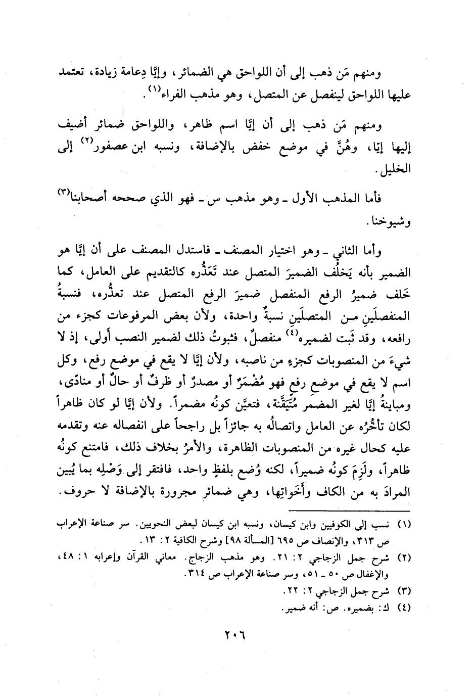 ومنهم من ذهب إلى أن إيا اسم ظاهر، واللواحق ضمائر أضيف إليها إيا، وهن في موضع خفض بالإضافة، ونسبه ابن عصفور إلى الخليل.