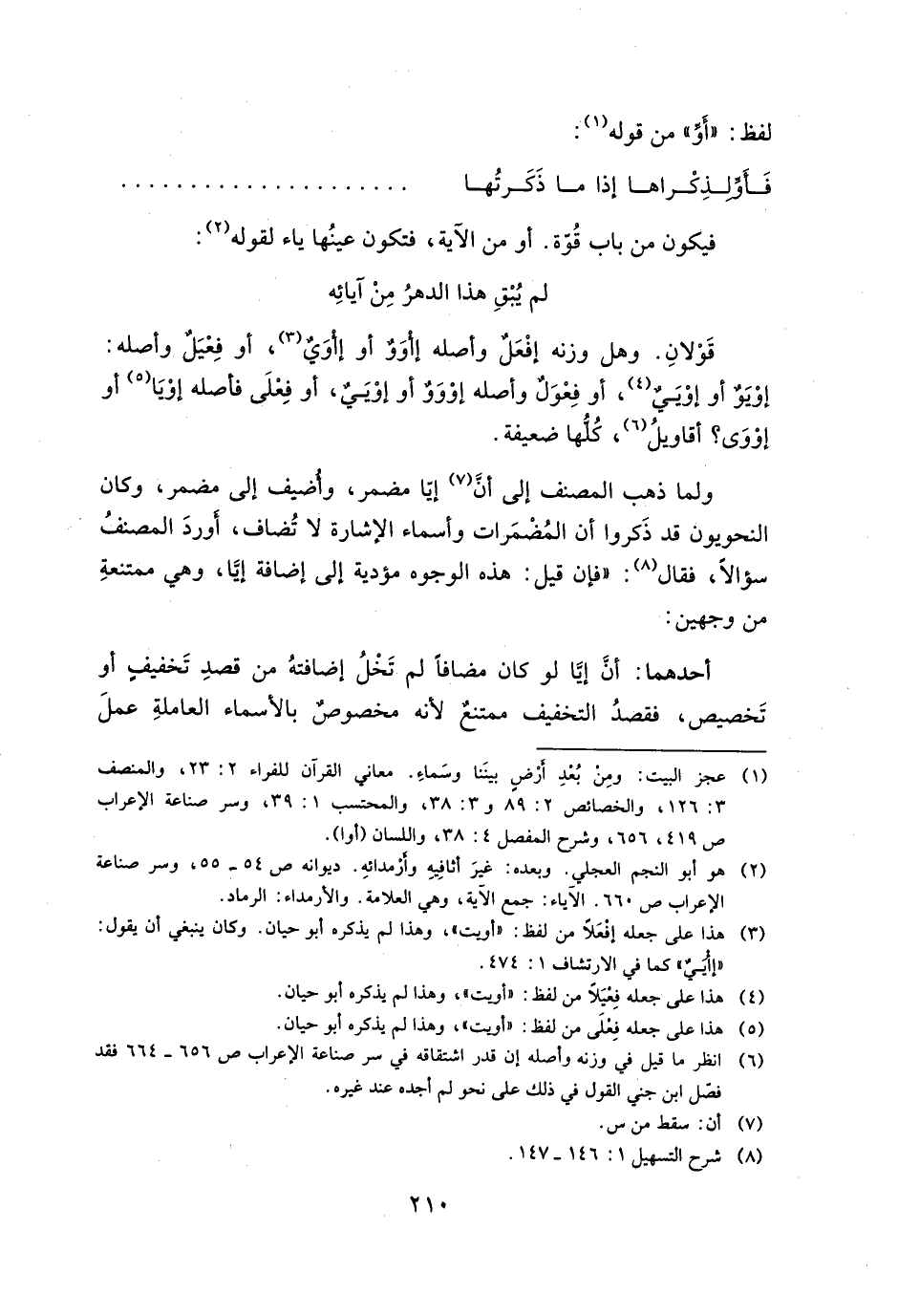 ولمل ذهب المصنف إلى أن إيا مضمر، وأضيف إلى مضمره، وكان النحويون قد ذكروا أن المضمرات وأسماء الإشارة لا تضاف، أورد المصنف سؤالًا، فقال: "فإن قيل: هذه الوجوه مؤدية إلى إضافة إيا، وهي ممتنعة من وجهين: