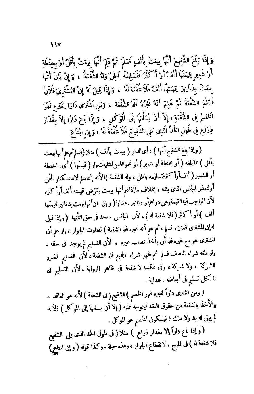 (وإذا باع داراً إلا مقدار ذراع) مثلا (في طول الحد الذي يلي الشفيع فلا شفعة له) في المبيع، لانقطاع الجوار، وهذه حيلة، وكذا قوله (وإن ابتاع)