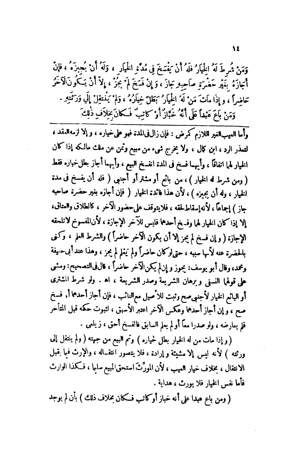 (وإذا مات مات من له الخيار بطل خياره) وتم البيع من جهته (ولم ينتقل إلى ورثته) ، لأنه ليس له إلا مشيئة وإرادة، فلا يتصور انتقاله، والإرث فيما يقبل الانتقال، بخلاف خيار العيب، لأن المورث استحق المبيع سليما، فكذا الوارث. فأما نفس الخيار فلا يورث. هداية.