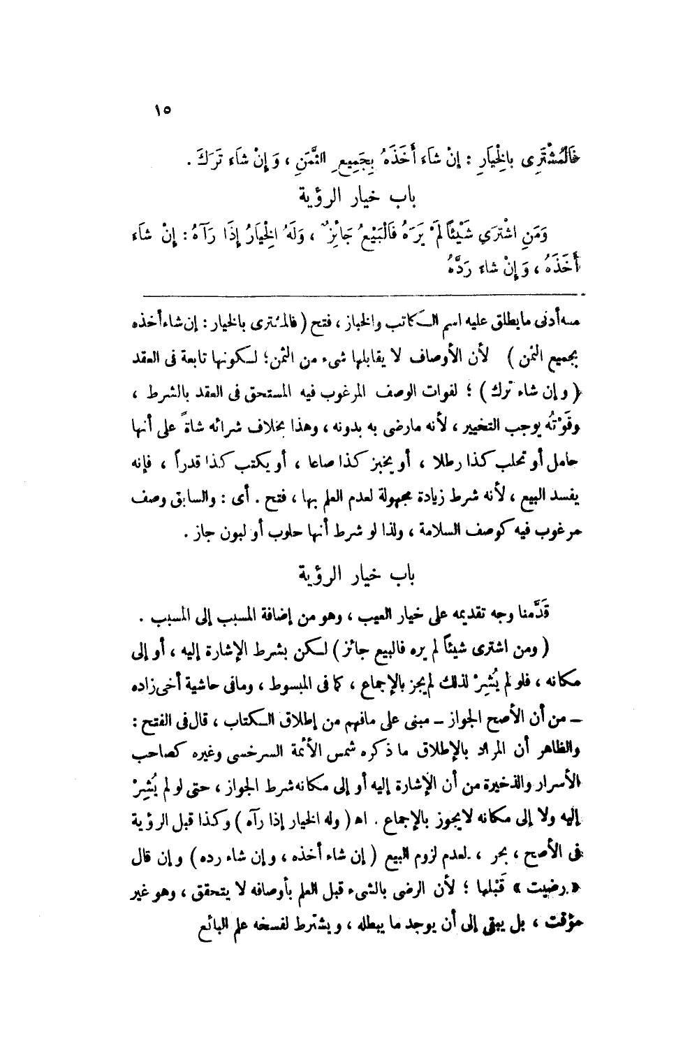 - ومن اشترى شيئاً لم يره فالبيع جائزٌ، وله الخيار إذا رآه: إن شاء أخذه، وإن شاء رده،