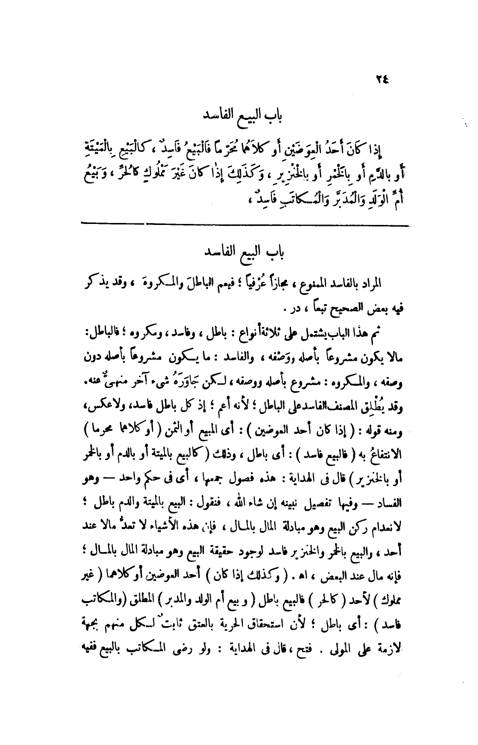 المراد بالفاسد الممنوع، مجازاً عرفيا؛ فيعم الباطل والمكروه، وقد يذكر فيه بعض الصيح تبعا. در.