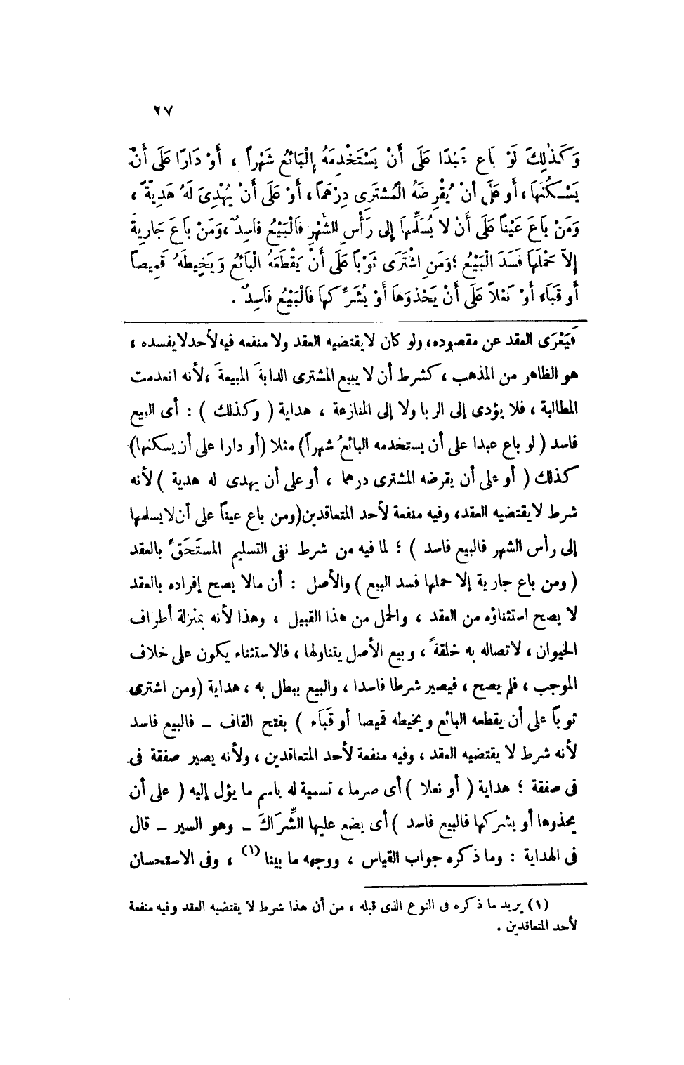 (¬1) يريد ما ذكره في الفرع الذي قبله. من أن هذا شرط لا يقتضيه العقد وفيه منفعة لأحد المتعاقدين