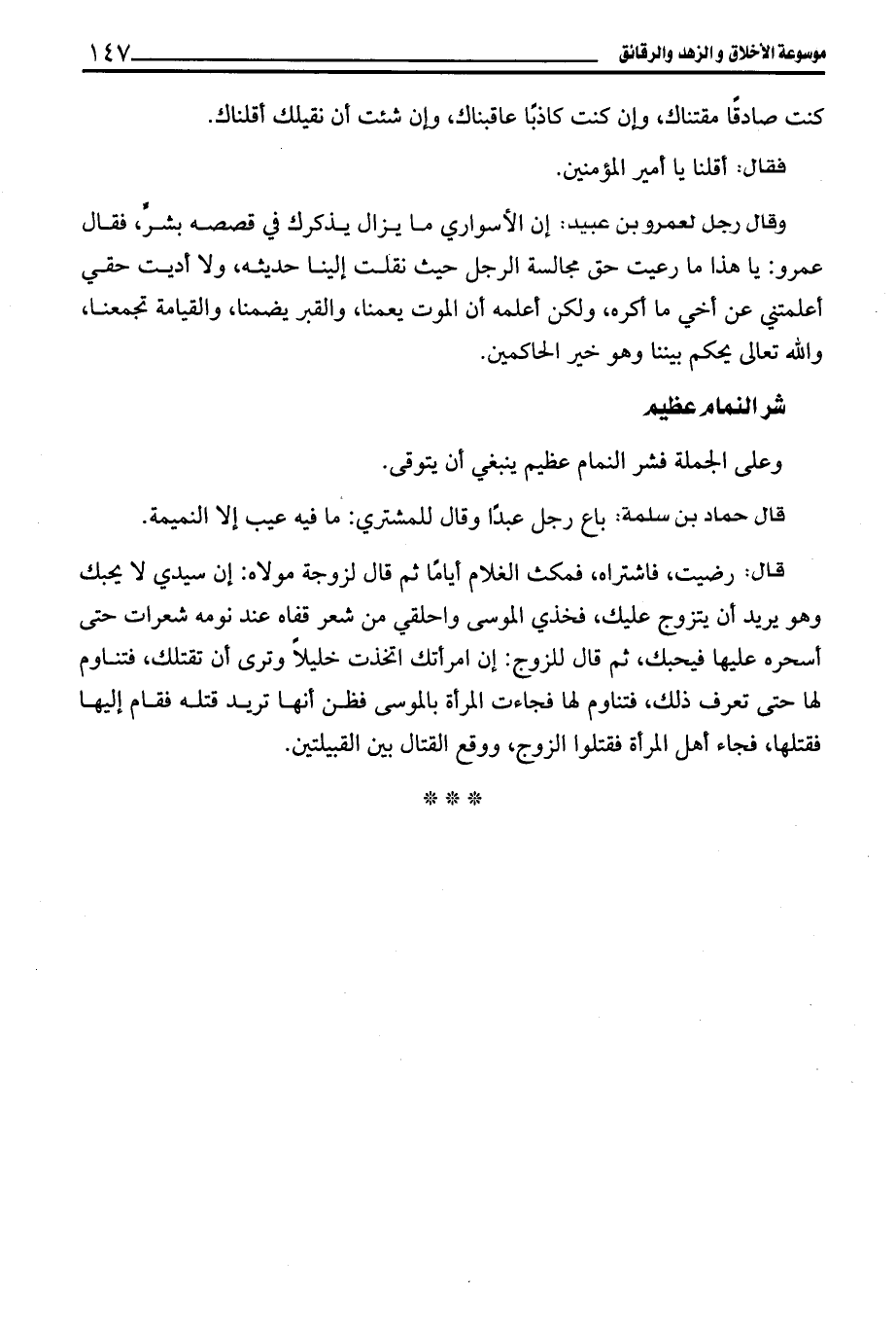 قال حماد بن سلمة: باع رجل عبدًا وقال للمشتري: ما فيه عيب إلا النميمة.