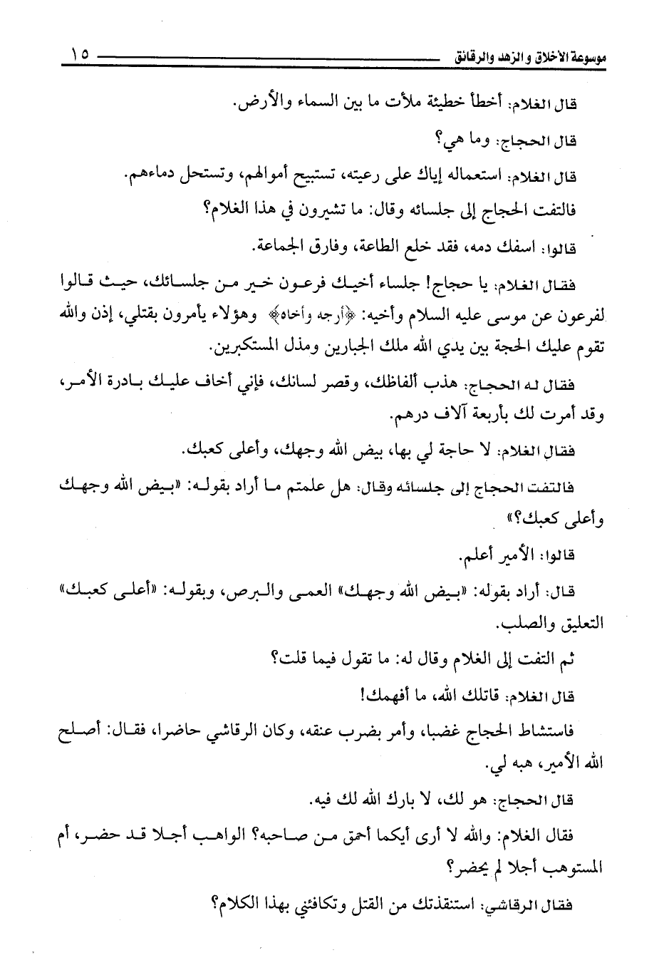 فقال الغلام: يا حجاج! جلساء أخيك فرعون خير من جلسائك، حيث قالوا لفرعون عن موسى عليه السلام وأخيه: {أَرْجِهْ وَأَخَاهُ} [الأعراف: 111] وهؤلاء يأمرون بقتلي، إذن والله تقوم عليك الحجة بين يدي الله ملك الجبارين ومذل المستكبرين.