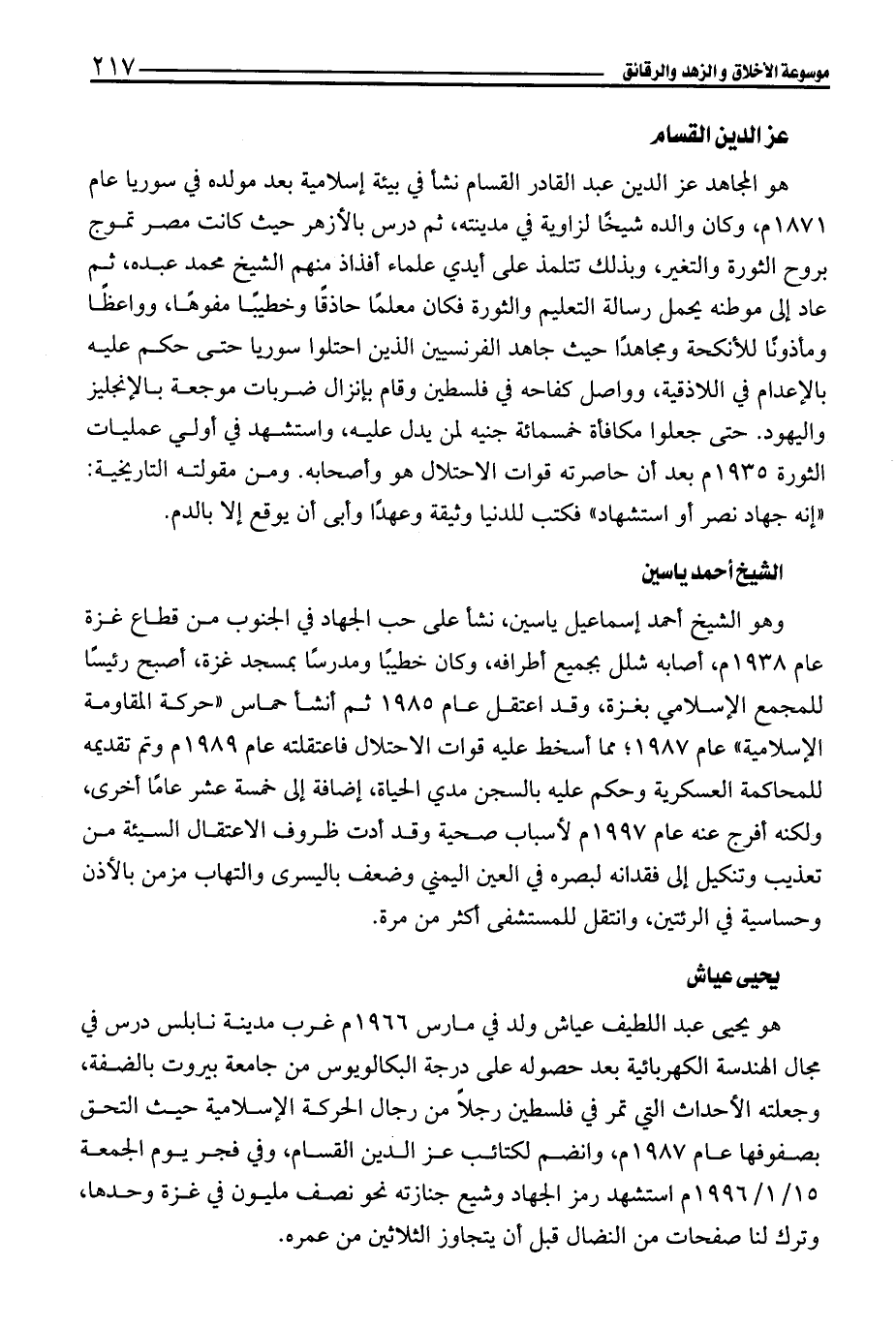 هو المجاهد عز الدين عبد القادر القسام نشأ في بيئة إسلامية بعد مولده في سوريا عام 1871 م، وكان والده شيخًا لزاوية في مدينته، ثم درس بالأزهر حيث كانت مصر تموج بروح الثورة والتغير، وبذلك تتلمذ على أيدي علماء أفذاذ منهم الشيخ محمد عبده، ثم عاد إلى موطنه يحمل رسالة التعليم والثورة فكان معلمًا حاذقًا وخطيبًا مفوهًا، وواعظًا ومأذونًا للأنكحة ومجاهدًا حيث جاهد الفرنسيين الذين احتلوا سوريا حتى حكم عليه بالإعدام في اللاذقية، وواصل كفاحه في فلسطين وقام بإنزال ضربات موجعة بالإنجليز واليهود. حتى جعلوا مكافأة خمسمائة جنيه لمن يدل عليه، واستشهد في أولي عمليات الثورة 1935 م بعد أن حاصرته قوات الاحتلال هو وأصحابه. ومن مقولته التاريخية: "إنه جهاد نصر أو استشهاد" فكتب للدنيا وثيقة وعهدًا وأبى أن يوقع إلا بالدم.