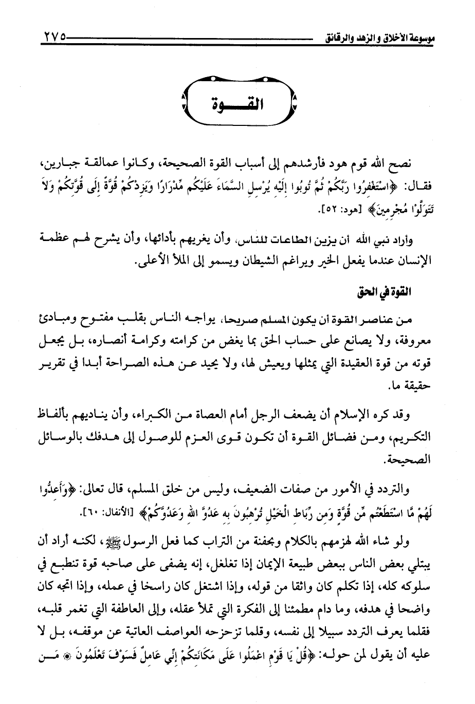 وقد كره الإسلام أن يضعف الرجل أمام العصاة من الكبراء، وأن يناديهم بألفاظ التكريم، ومن فضائل القوة أن تكون قوى العزم للوصول إلى هدفك بالوسائل الصحيحة.