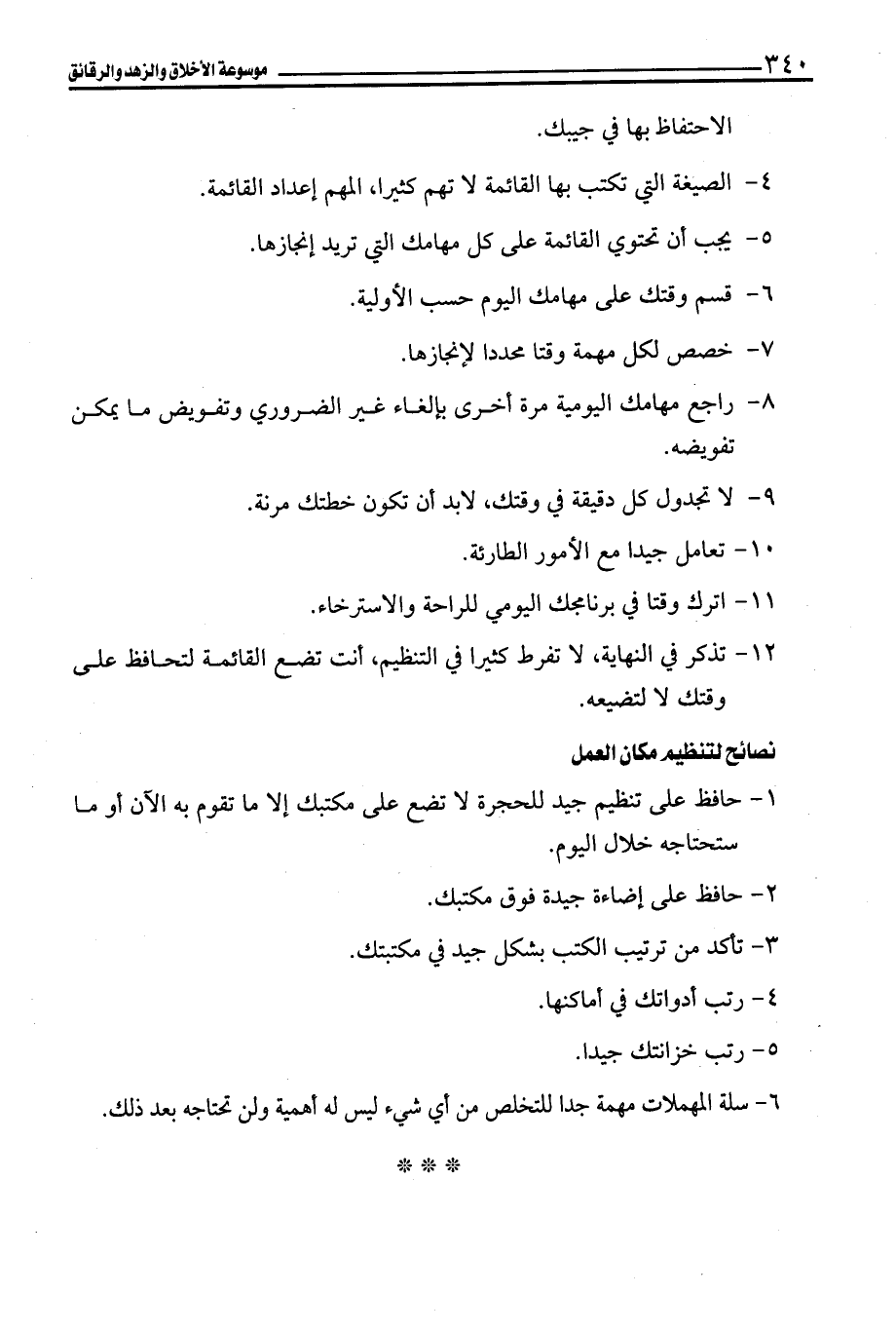 1 - حافظ على تنظيم جيد للحجرة لا تضع على مكتبك إلا ما تقوم به الآن أو ما ستحتاجه خلال اليوم.
