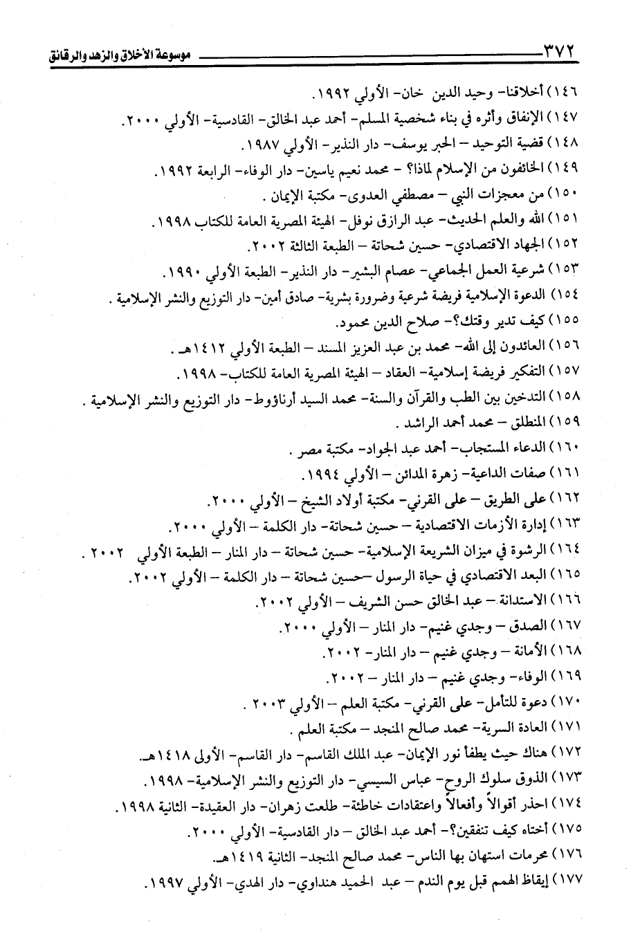 174) احذر أقوالاً وأفعالاً واعتقادات خاطئة- طلعت زهران- دار العقيدة- الثانية 1998.