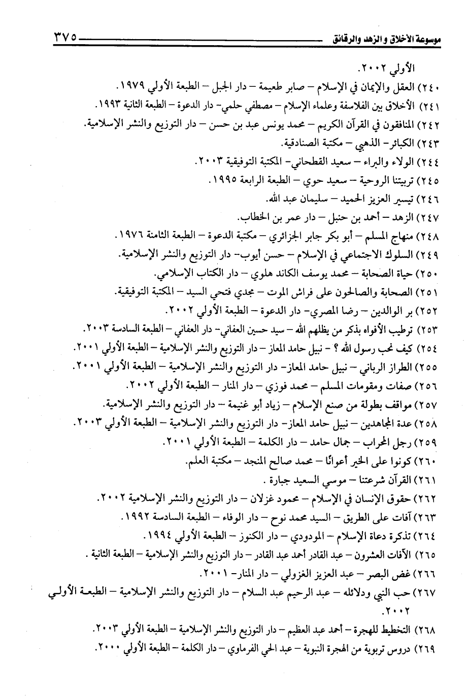 256) صفات ومقومات المسلم- محمد فوزي- دار المنار- الطبعة الأولى 2002.