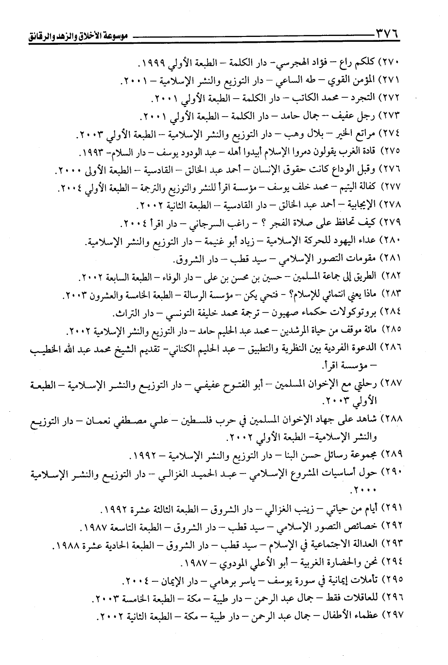 290) حول أساسيات المشروع الإسلامي- عبد الحميد الغزالي- دار التوزيع والنشر الإسلامية 2000.