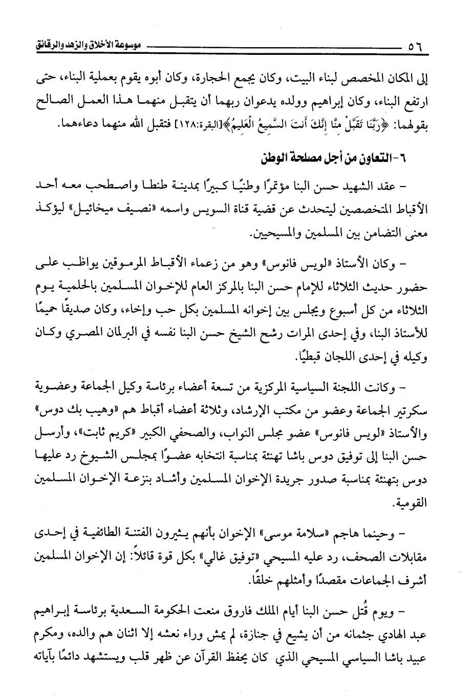 - عقد الشهيد حسن البنا مؤتمرًا وطنيًا كبيرًا بمدينة طنطا واصطحب معه أحد الأقباط المتخصصين ليتحدث عن قضية قناة السويس واسمه "نصيف ميخائيل" ليؤكد معنى التضامن بين المسلمين والمسيحيين.