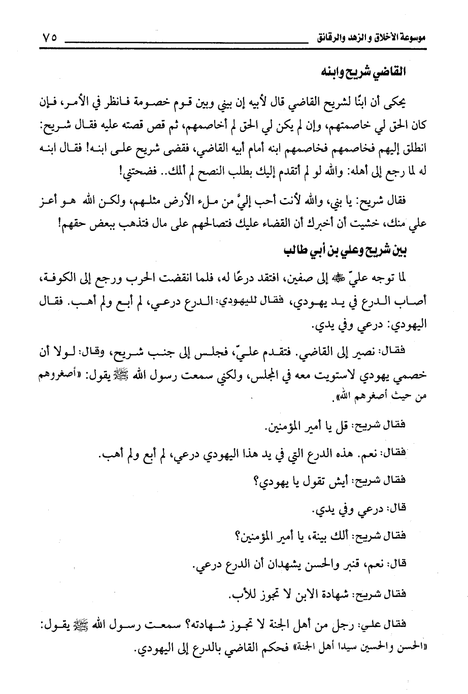 - فقال: نعم. هذه الدرع التي في يد هذا اليهودي درعي، لم أبع ولم أهب.