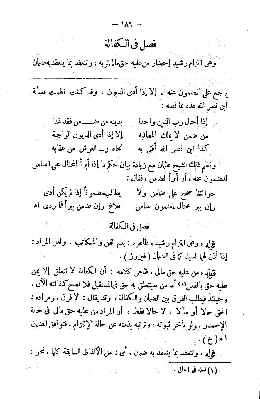 فصل في الكفالة وهي التزام رشيد إحضار من عليه حق مالي لربه وتنعقد بما ينعقد به ضمان