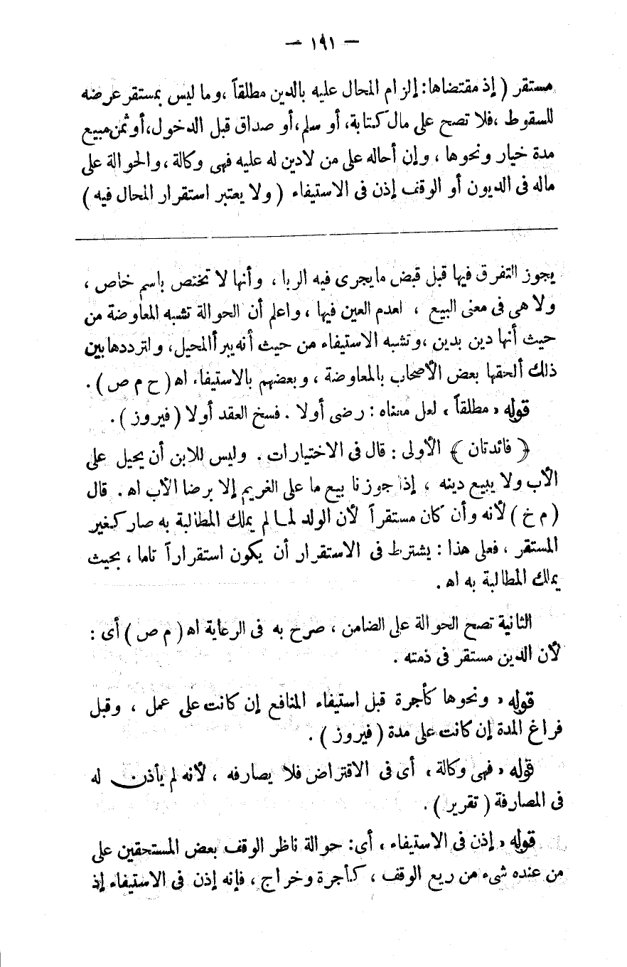 مستقر ) إذ مقتضاها إلزام المحال عليه بالدين مطلقا وما ليس بمستقر عرضة للسقوط فلا تصح على مال كتابة أو سلم أو صداق قبل الدخول أو ثمن مدة خيار ونحوها وإن أحاله على من لا دين عليه فهي وكالة والحوالة على ماله في الديوان أو الوقف إذن في الاستيفاء ( ولا يعتبر استقرار المحال فيه )