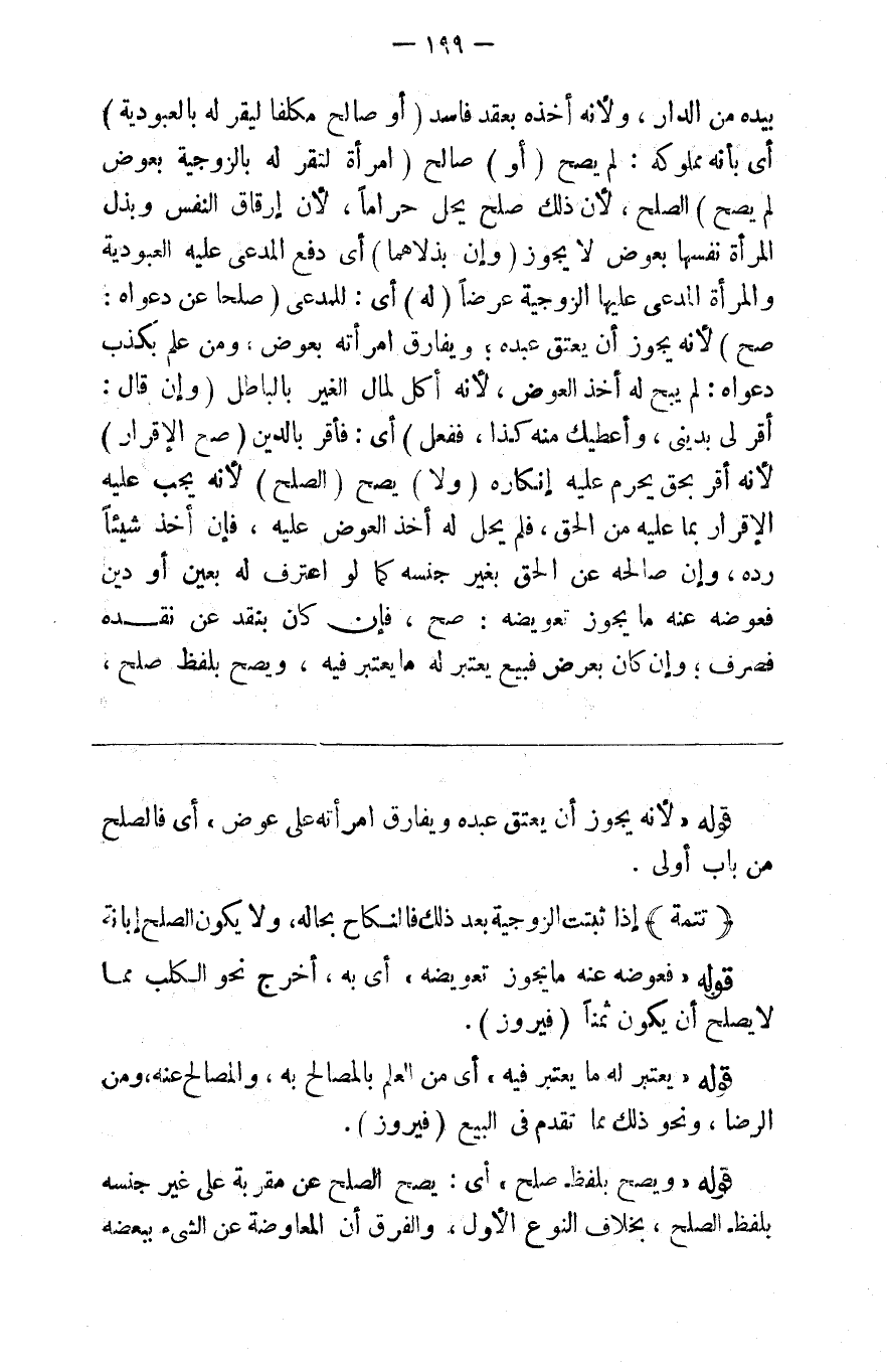 كان بيده من الدار لأنه أخذه بعقد فاسد ( أو صالح مكلفا ليقر له بالعبودية ) أي بأنه مملوكه لم يصح ( أو ) صالح ( امرأة لتقر له بالزوجية بعوض لم يصح ) الصلح لأن ذلك صلح يحل حراما لأن إرقاق النفس وبذل المرأة نفسها بعوض لا يجوز ( وإن بذلاهما ) أي دفع المدعى عليه العبودية والمرأة المدعى عليها الزوجية عوضا ( له ) أي للمدعي ( صلحا عن دعواه صح ) لأنه يجوز أن يعتق عبده ويفارق امرأته بعوض ومن علم بكذب دعواه لم يبح له أخذ العوض لأنه أكل لمال الغير بالباطل ( وإن قال أقر لي بديني وأعطيك منه كذا ففعل ) أي فأقر بالدين ( صح الإقرار ) لأنه أقر بحق يحرم عليه إنكاره و ( لا ) يصح ( الصلح ) لأنه يجب عليه الإقرار بما عليه من الحق فلم يحل له أخذ العوض عليه فإن أخذ شيئا رده وإن صالحه عن الحق بغير جنسه كما لو اعترف له بعين أو دين فعوضه عنه ما يجوز تعويضه صح فإن كان بنقد عن نقده فصرف وإن كان بعوض فبيع فاعتبر له ما اعتبر فيه ويصح بلفظ صلح
