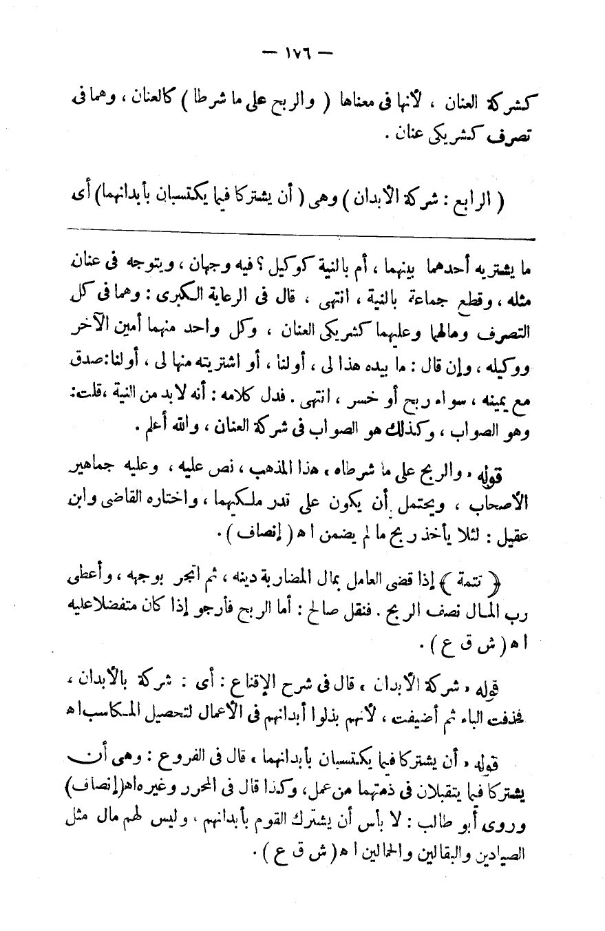كشركة العنان لأنها في معناها ( والربح على ماشرطاه ) كالعنان وهما في تصرف كشريكي عنان ( الرابع شركة الأبدان ) وهي ( أن يشتركا فيما يكتسبان بأبدانهما ) أي