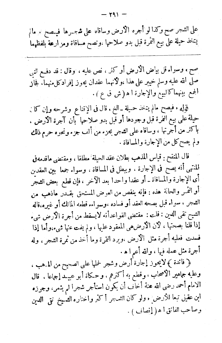 على الشجر صح وكذا لو أجره الأرض وساقاه على شجرها فيصح ما لم يتخذه حيلة على بيع الثمرة قبل بدو صلاحها وتصح مساقاة ومزارعة بلفظهما
