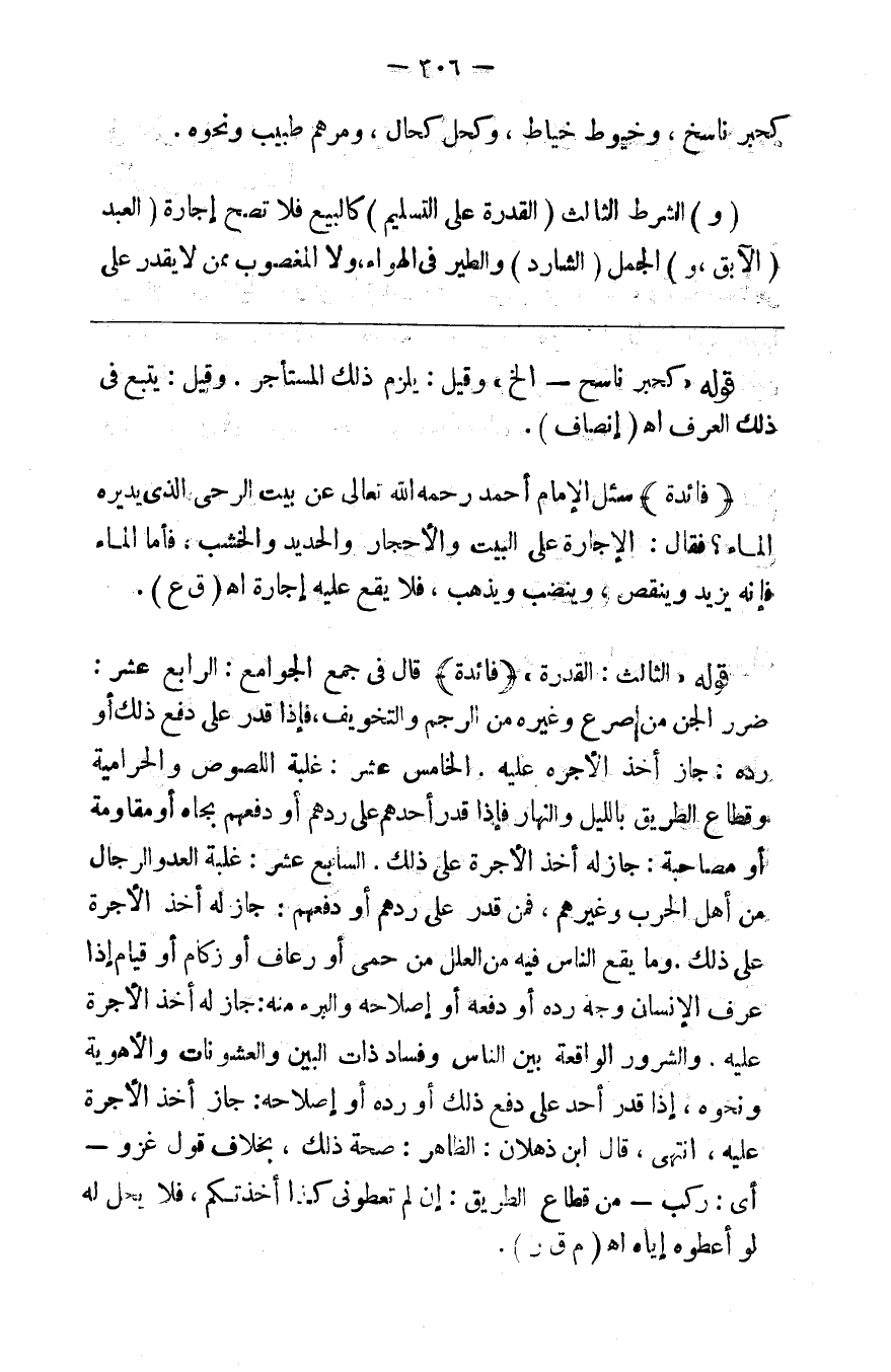 كحبر ناسخ وخيوط خياط وكحل كحال ومرهم طبيب ونحوه ( و ) الشرط الثالث ( القدرة على التسليم ) كالبيع ( فلا تصح إجارة ) العبد ( الآبق و ) الجمل ( الشارد ) والطير في الهواء ولا المغصوب ممن لايقدر على