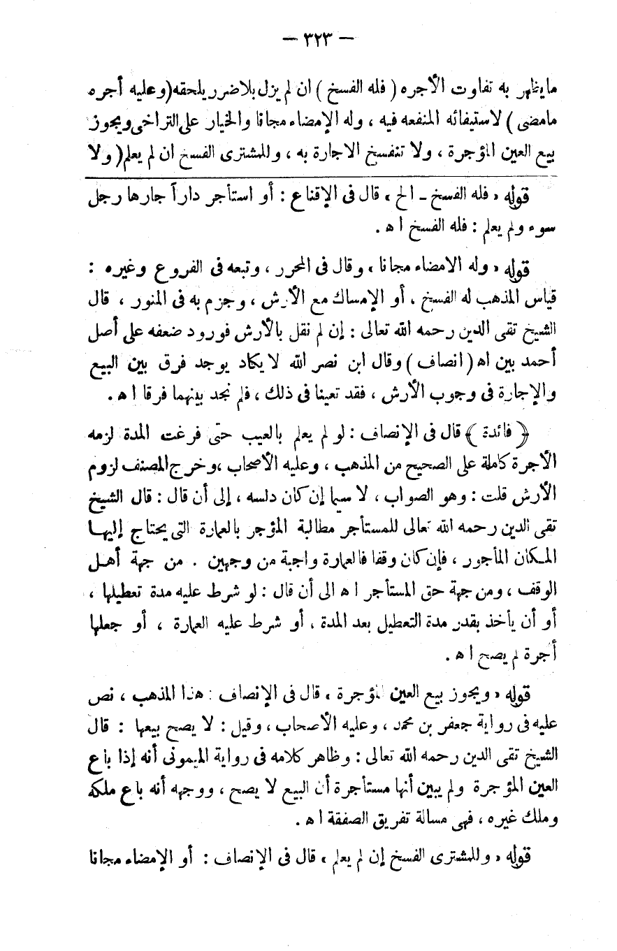 مايظهر به تفاوت الأجر ( فله الفسخ ) إن لم يزل بلا ضرر يلحقه ( وعليه أجرة مامضى ) لاستيفائه المنفعة فيه وله الإمضاء مجانا والخيار على التراخي ويجوز بيع العين المؤجرة ولا تنفسخ الإجارة به وللمشتري الفسخ إن لم يعلم ( ولا