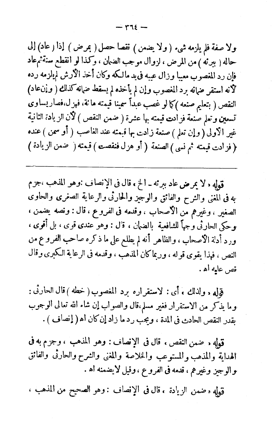 ولا صفة فلم يلزمه شيء ( ولا ) يضمن نقصا حصل ( بمرض ) إذا ( عاد ) إلى حاله ( ببرئه ) من المرض لزوال موجب الضمان وكذا لو انقلع سنه ثم عاد فإن رد المغصوب معيبا وزال عيبه في يد مالكه وكان أخذ الأرش لم يلزمه رده لأنه استقر ضمانه برد المغصوب وإن لم يأخذه لم يسقط ضمانه كذلك ( وإن عاد ) النقص ( بتعليم صنعة ) كما لو غصب عبدا سمينا قيمته مائة فهزل فصار يساوي تسعين وتعلم صنعة فزادت قيمته بها عشرة ( ضمن النقص ) لأن الزيادة الثانية غير الأولى ( وإن تعلم ) صنعة زادت بها قيمته عند الغاصب ( أو سمن ) عنده ( فزادت قيمته ثم نسي ) الصنعة ( أو هزل فنقصت ) قيمته ( ضمن الزيادة )
