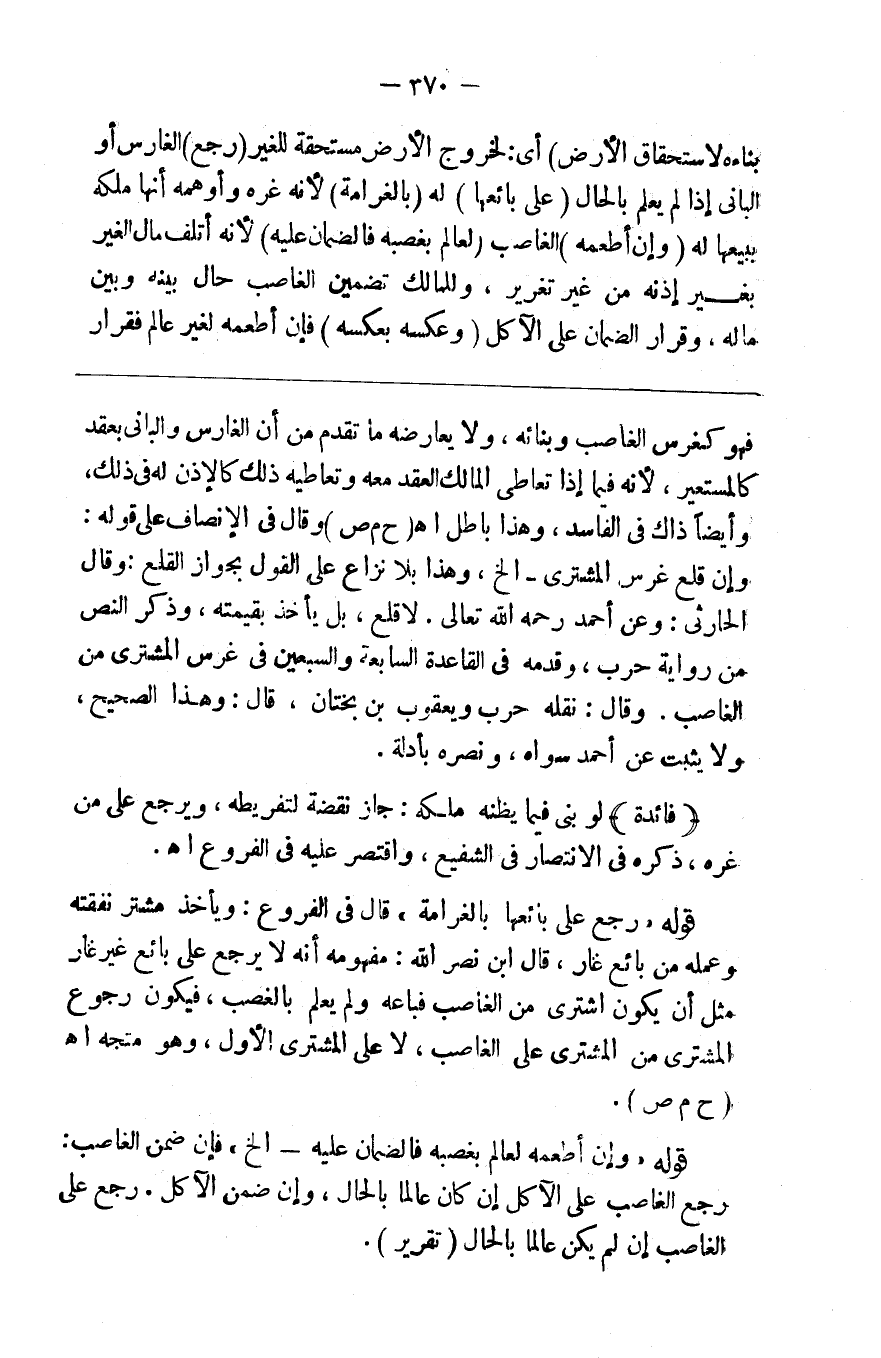 بناءه لاستحقاقه الأرض ) أي لخروج الأرض مستحقة للغير ( رجع ) الغارس أو الباني إذا لم يعلم بالحال ( على بائعها بالغرامة ) له لأنه غره وأوهمه أنها ملكه يبيعها له ( وإن أطعمه ) الغاصب ( لعالم بغصبه فالضمان عليه ) لأنه أتلف مال الغير بغير إذنه من غير تغرير وللمالك تضمين الغاصب لأنه حال بينه وبين ماله وقرار الضمان على الآكل ( وعكسه بعكسه ) فإن أطعمه لغير عالم فقرار