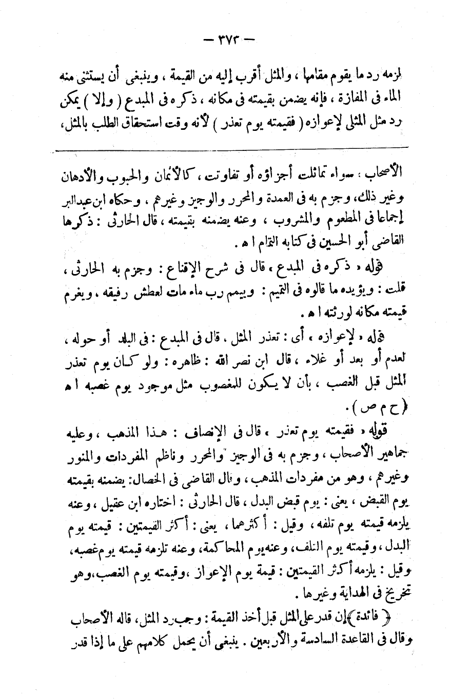 لزمه رد ما يقوم مقامها والمثل أقرب إليه من القيمة وينبغي أن يستثني منه الماء في المفازة فإنه يضمن بقيمته في مكانه ذكره في المبدع ( وإلا ) يمكن رد مثل المثلي لإعوازه ( فقيمته يوم تعذر ) لأنه وقت استحقاق الطلب بالمثل