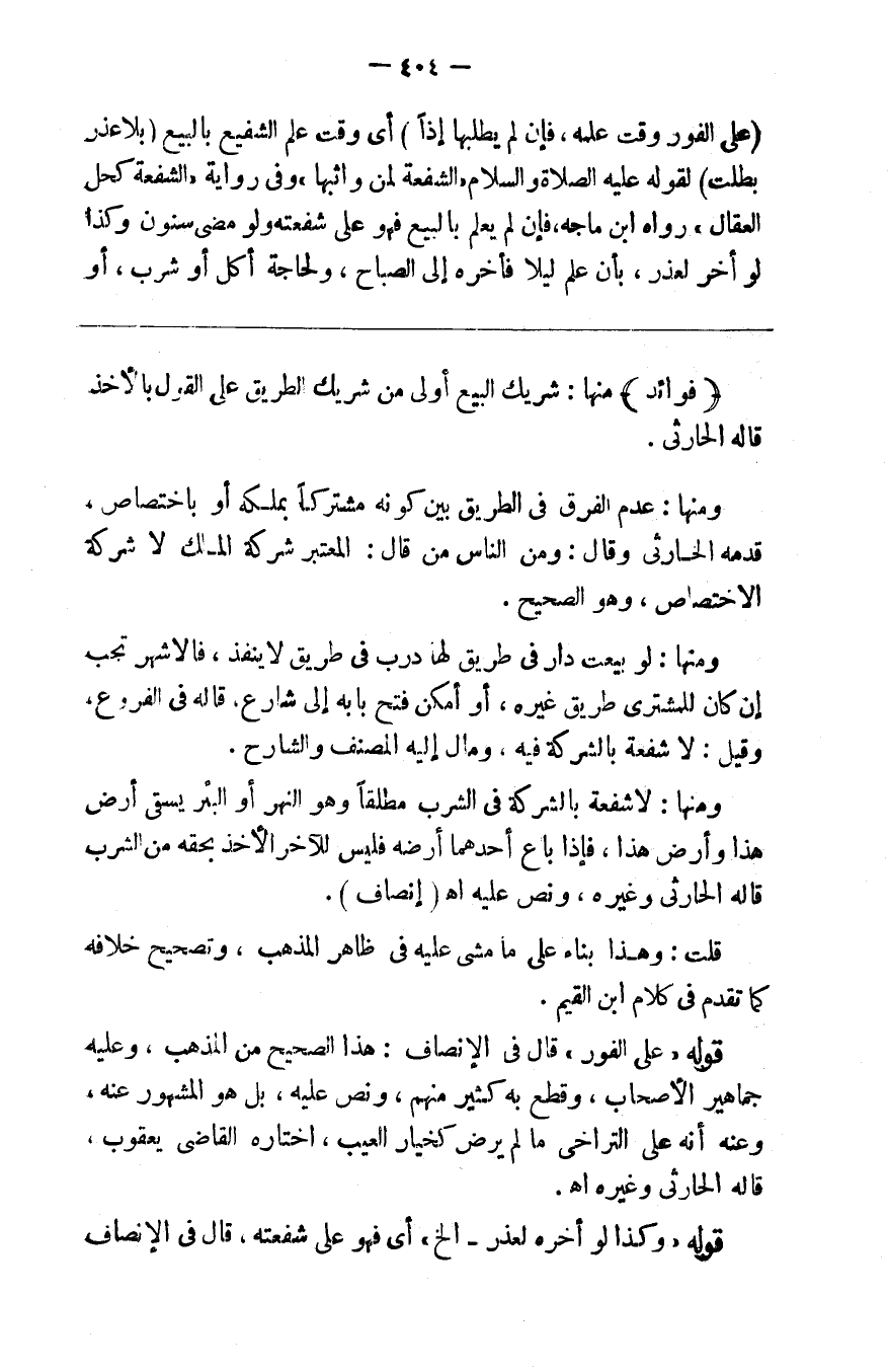 ( على الفور وقت علمه فإن لم يطلبها إذن ) أي وقت علم الشفيع بالبيع ( بلا عذر بطلت ) لقوله صلى الله عليه وسلم الشفعة لمن واثبها وفي رواية الشفعة كحل العقال رواه ابن ماجه فإن لم يعلم بالبيع فهو على شفعته ولو مضى سنون وكذا لو أخر لعذر بأن علم ليلا فأخره إلى الصباح أو لحاجة أكل أو شرب أو