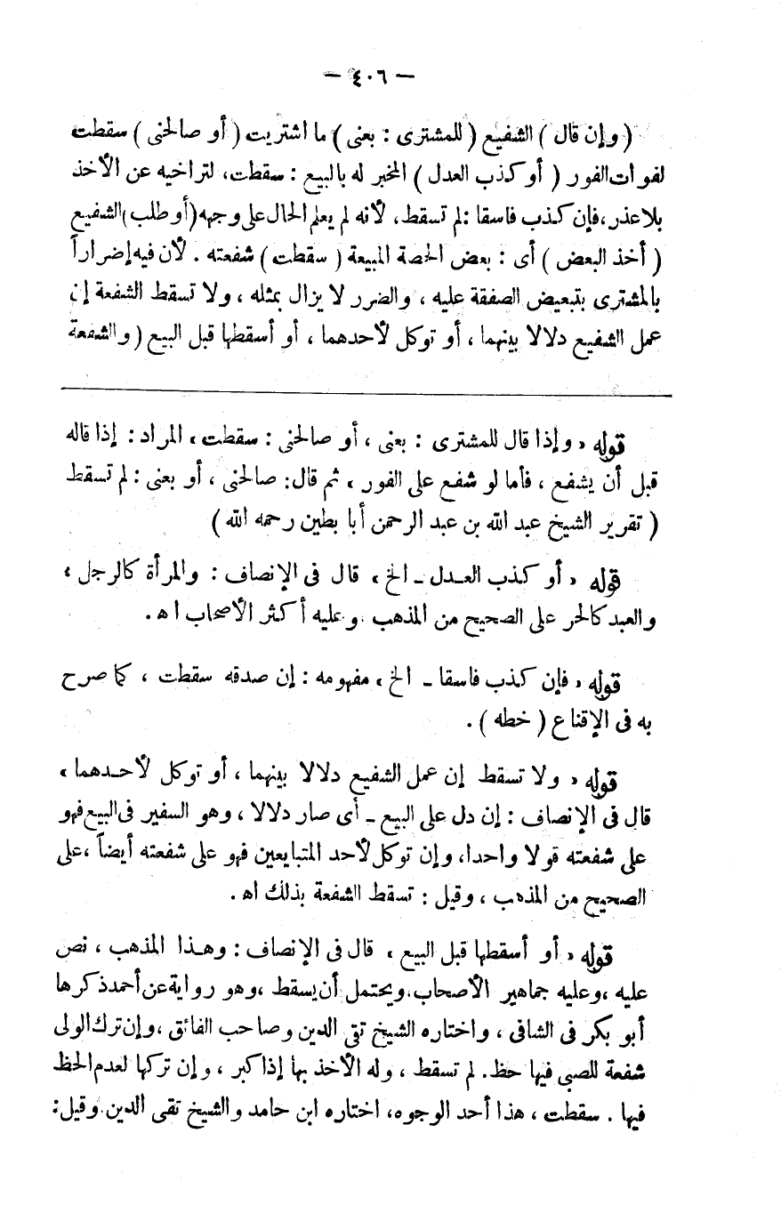 ( وإن قال ) الشفيع ( للمشتري بعني ) ما اشتريت ( أو صالحني ) سقطت لفوات الفور ( أو كذب العدل ) المخبر له بالبيع سقطت لتراخيه عن الأخذ بلا عذر فإن كذب فاسقا لم تسقط لأنه يعلم الحال على وجهه ( أو طلب ) الشفيع ( أخذ البعض ) أي بعض الحصة المبيعة ( سقطت ) شفعته لأن فيه إضرارا بالمشتري بتبعيض الصفقة عليه والضرر لا يزال بمثله ولا تسقط الشفعة إن عمل الشفيع دلالا بينهما أو توكل لأحدهما أو أسقطها قبل البيع ( والشفعة