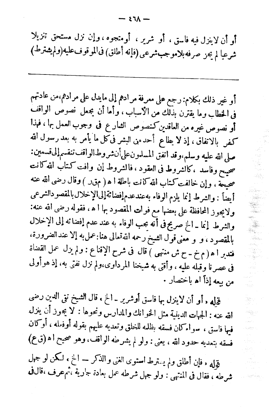 أو أن لا ينزل فيه فاسق أو شرير أو متجوه ونحوه وإن نزل مستحق تنزيلا شرعيا لم يجز صرفه بلا موجب شرعي ( فإن أطلق ) في الموقوف عليه ( ولم يشترط )