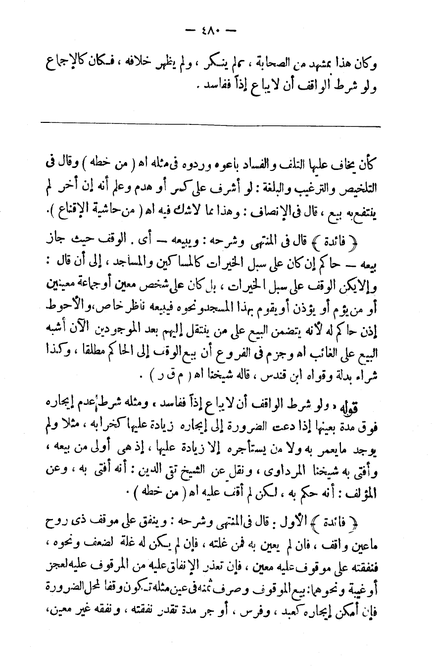 وكان هذا بمشهد من الصحابة ولم يظهر خلافة فكان كالإجماع ولو شرط الواقف أن لا يباع إذن ففاسد