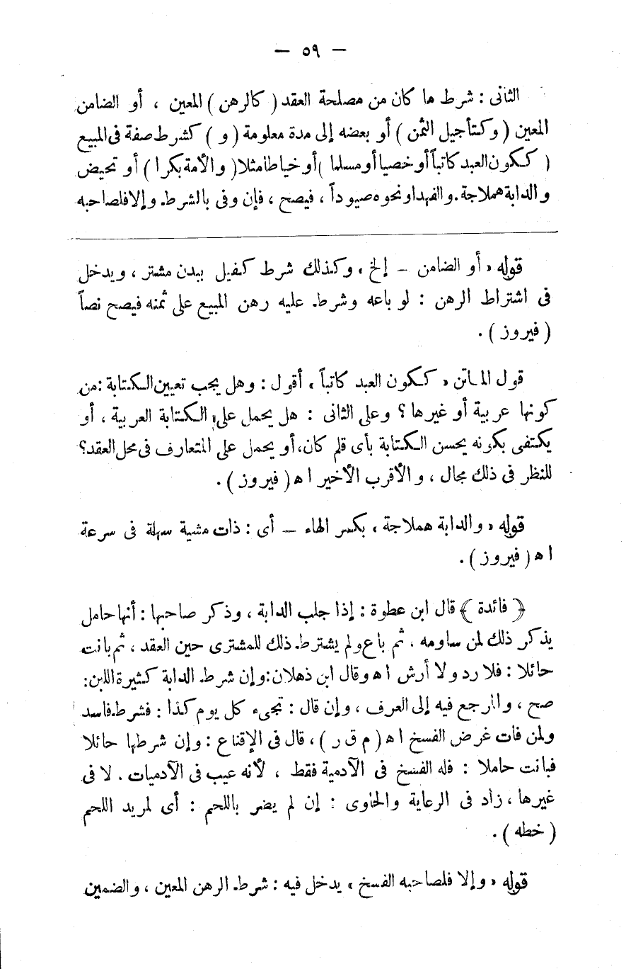 الثاني شرط ما كان من مصلحة العقد ( كالرهن المعين ) أو الضامن المعين ( و ) ك ( تأجيل ثمن ) أو بعضه إلى مدة معلومة ( و ) كشرط صفة في المبيع ك ( كون العبد كاتبا أو خصيا أو مسلما ) أو خياطا مثلا ( والأمة بكرا ) أو تحيض والدابة هملاجة والفهد أو نحوه صيودا فيصح فإن وفي بالشرط وإلا فلصاحبه