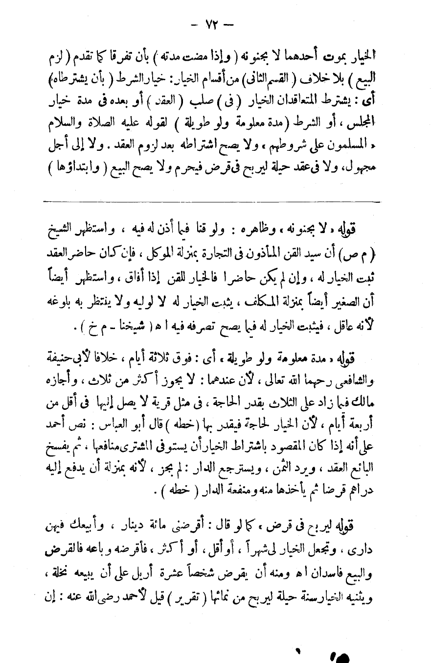 لابجنونه ( وإذا مضت مدته ) بأن تفرقا كما تقدم ( لزم البيع ) بلا خلاف القسم ( الثاني ) من أقسام الخيار خيار الشرط ب ( أن يشترطاه ) أي يشترط المتعاقدان الخيار ( في ) صلب ( العقد ) أو بعده في مدة خيار المجلس أو الشرط ( مدة معلومة ولو طويلة ) لقوله صلى الله عليه وسلم المسلمون عل شروطهم ولا يصح اشتراطه بعد لزوم العقد ولا إلى أجل مجهول ولا في عقد حيلة ليربح في قرض فيحرم ولا يصح البيع ( وابتداؤها ) أي ابتداء مدة الخيار ( من العقد )