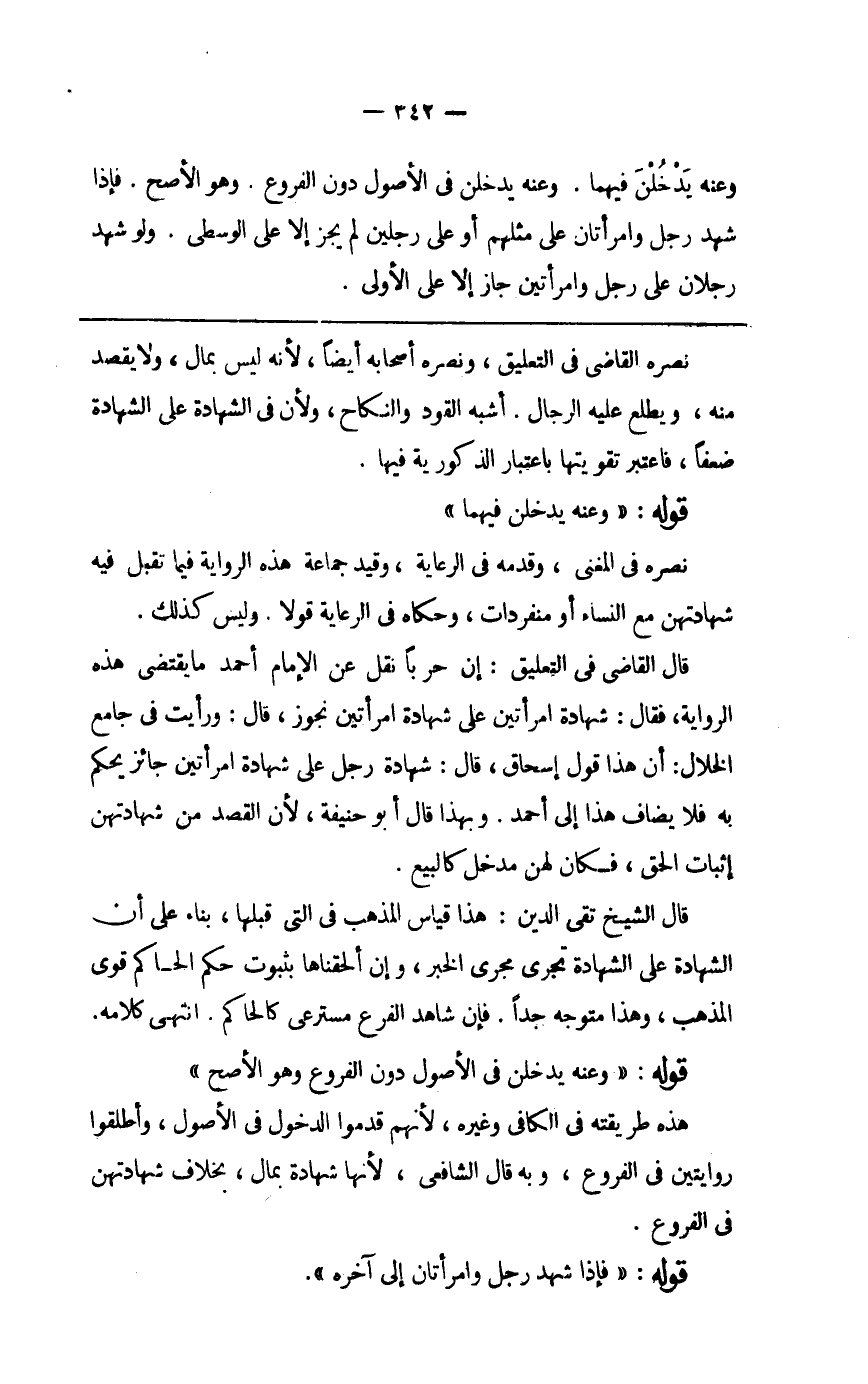 هَذِه طَرِيقَته فِي الْكَافِي وَغَيره لأَنهم قدمُوا الدُّخُول فِي الْأُصُول وأطلقوا رِوَايَتَيْنِ فِي الْفُرُوع وَبِه قَالَ الشَّافِعِي لِأَنَّهَا شَهَادَة بِمَال بِخِلَاف شَهَادَتهنَّ فِي الْفُرُوع