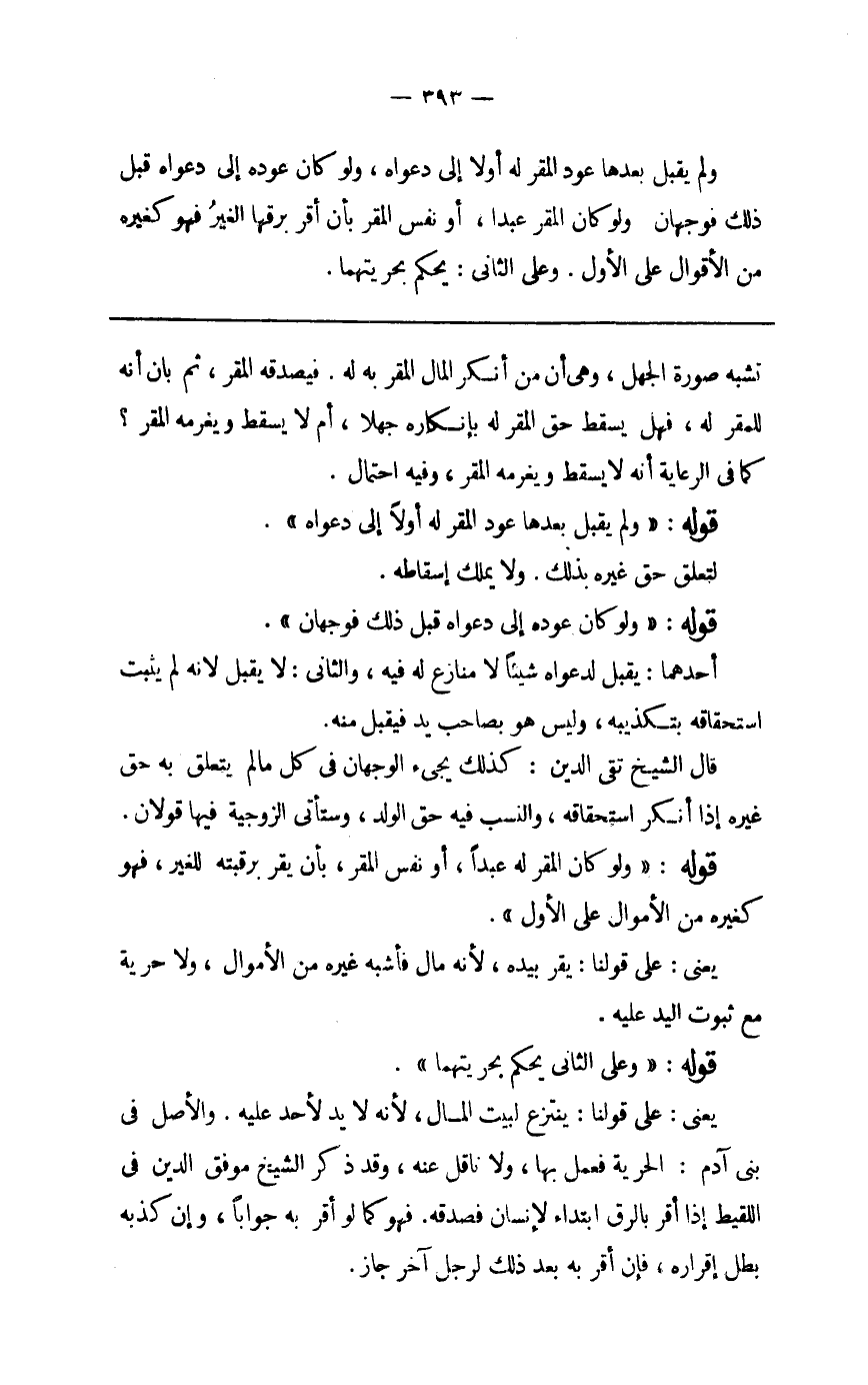قَالَ الشَّيْخ تَقِيّ الدّين كَذَلِك يَجِيء الْوَجْهَانِ فِي كل مالم يتَعَلَّق بِهِ حق غَيره إِذا أنكر اسْتِحْقَاقه وَالنّسب فِيهِ حق الْوَلَد وَسَتَأْتِي الزَّوْجِيَّة فِيهَا قَولَانِ