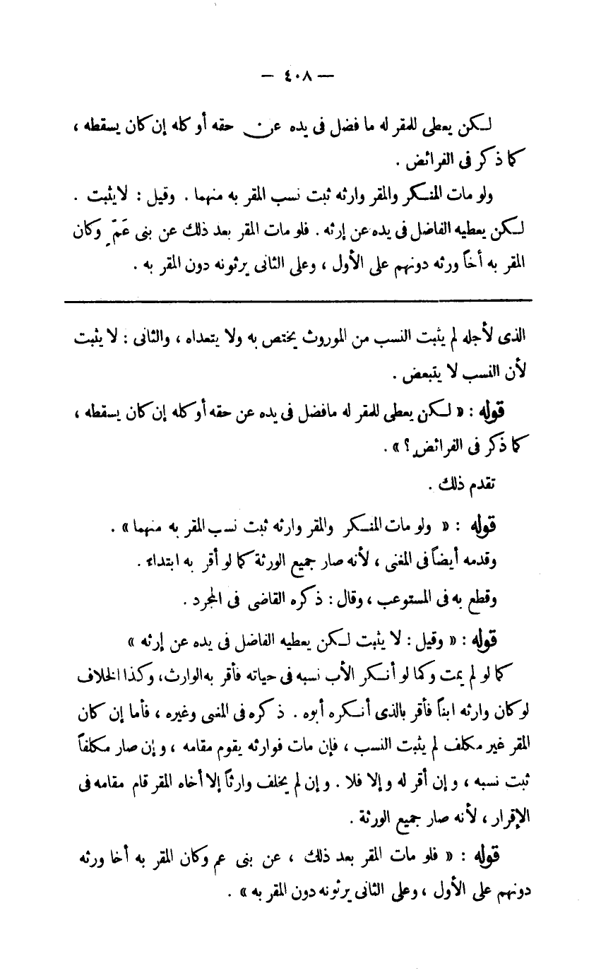 الَّذِي لأَجله لم يثبت النّسَب من الْمَوْرُوث يخْتَص بِهِ وَلَا يتعداه وَالثَّانِي لَا يثبت لِأَن النّسَب لَا يَتَبَعَّض
