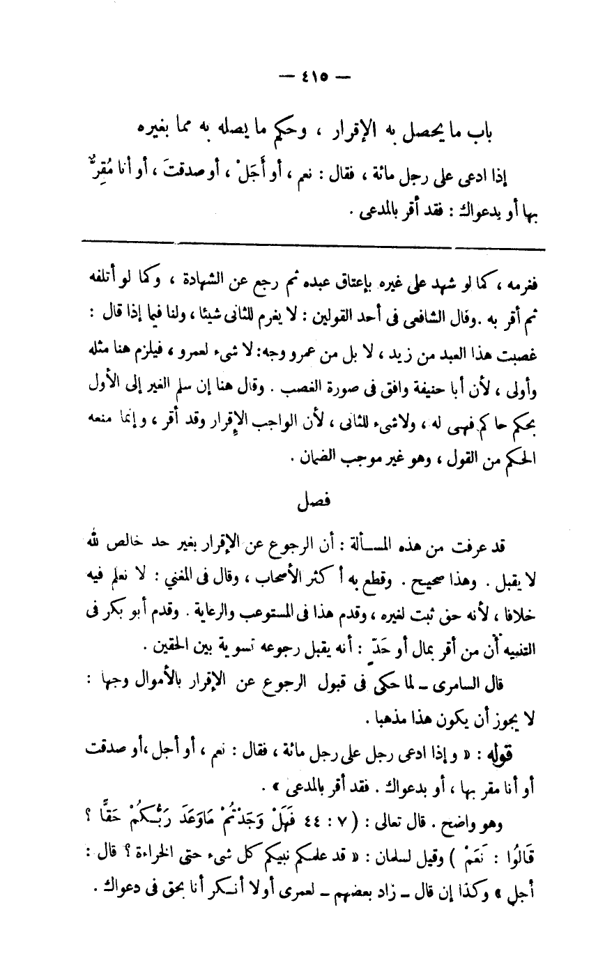 قَالَ السامري لما حكى فِي قبُول الرُّجُوع عَن الْإِقْرَار بالأموال وَجها لَا يجوز أَن يكون هَذَا مذهبا