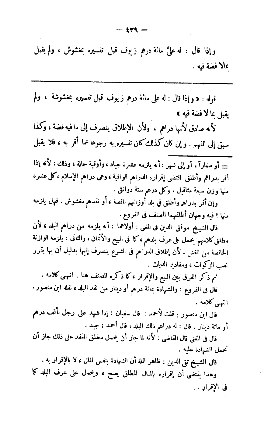 قَوْله وَإِذا قَالَ لَهُ على مائدة دِرْهَم زيوف قبل تَفْسِيره بمغشوشة وَلم يقبل بِمَا لَا فضَّة فِيهِ