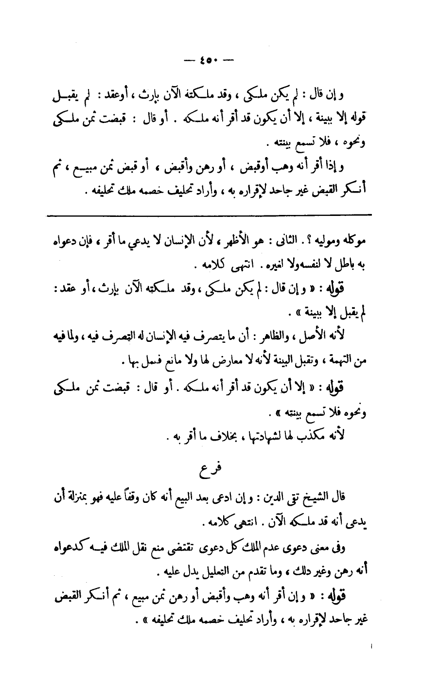 وَفِي معنى دَعْوَى عدم الْملك كل دَعْوَى تَقْتَضِي تقتض منع نقل الْملك فِيهِ كدعواه أَنه رهن وَغير ذَلِك وَمَا تقدم من التَّعْلِيل يدل عَلَيْهِ