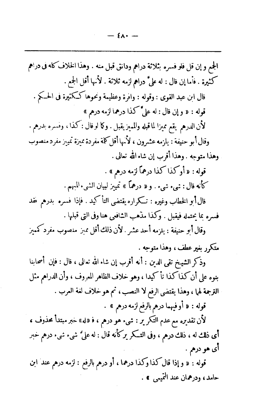 وَذكر الشَّيْخ تَقِيّ الدّين أَن أقرب إِن شَاءَ الله تَعَالَى قَالَ فَإِن أَصْحَابنَا بنوه على أَن كَذَا كَذَا تَأْكِيدًا وَهُوَ خلاف الظَّاهِر الْمَعْرُوف وَأَن الدَّرَاهِم مثل التَّرْجَمَة لَهما وَهَذَا يَقْتَضِي الرّفْع لَا النصب ثمَّ هُوَ خلاف لُغَة الْعَرَب